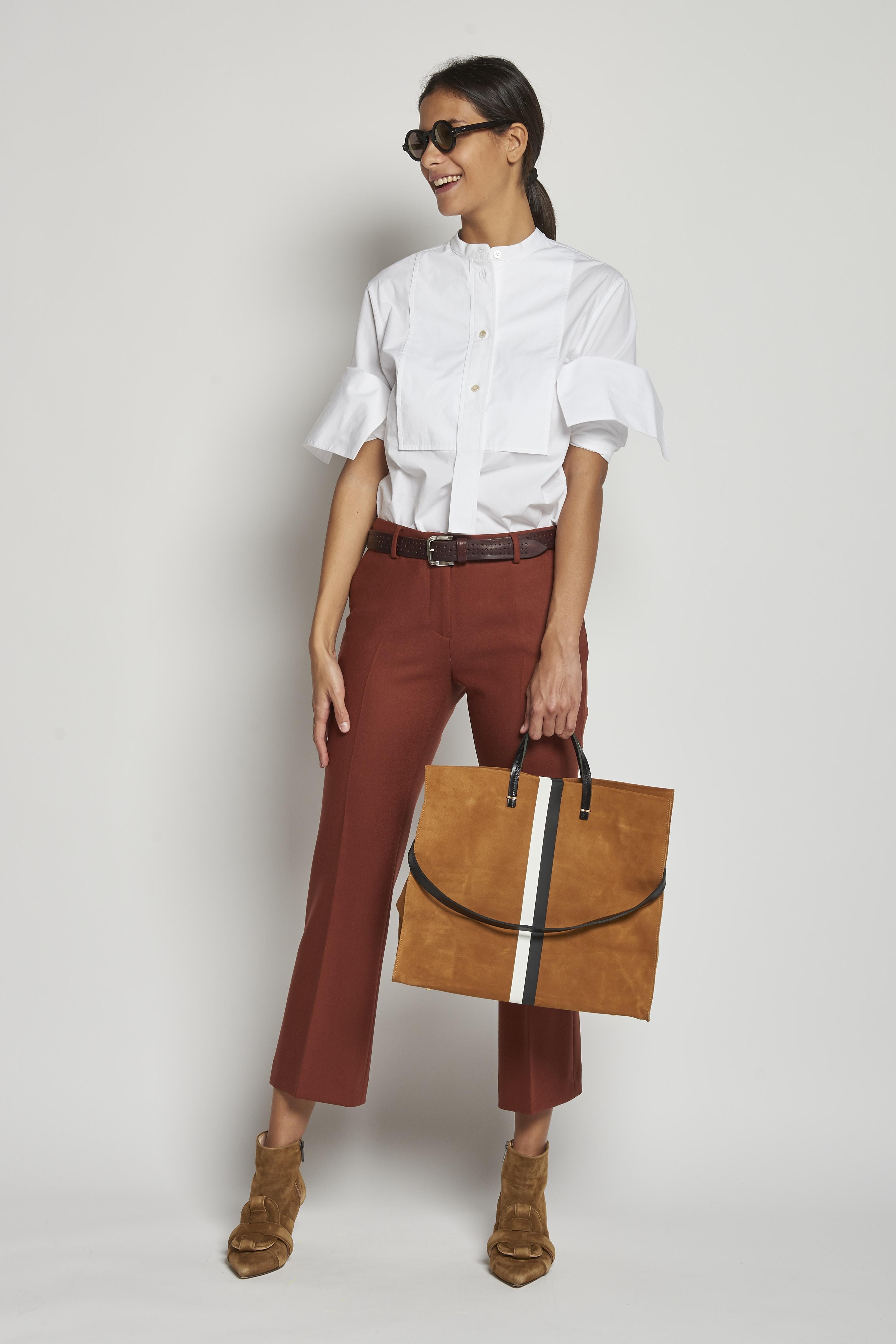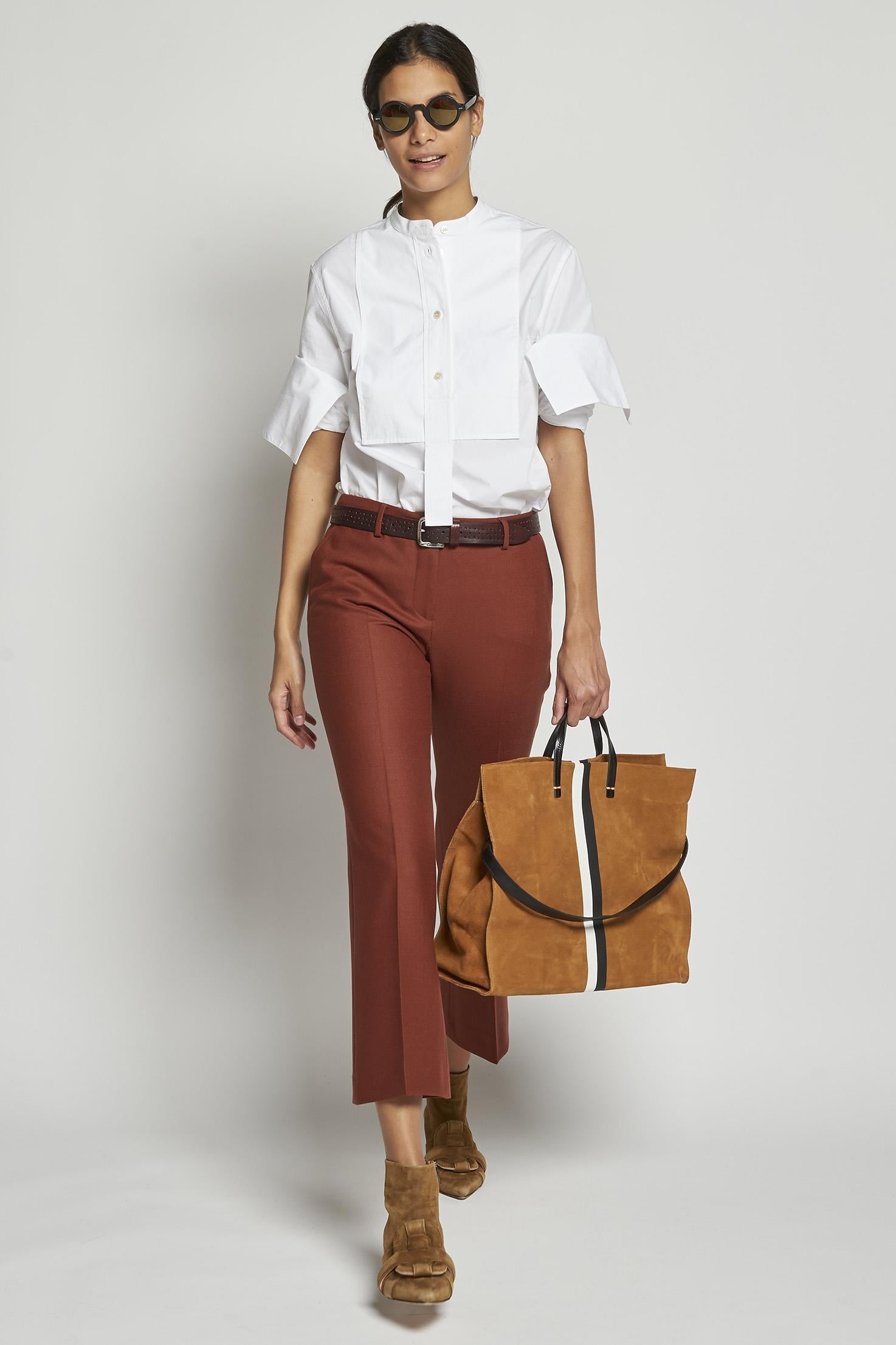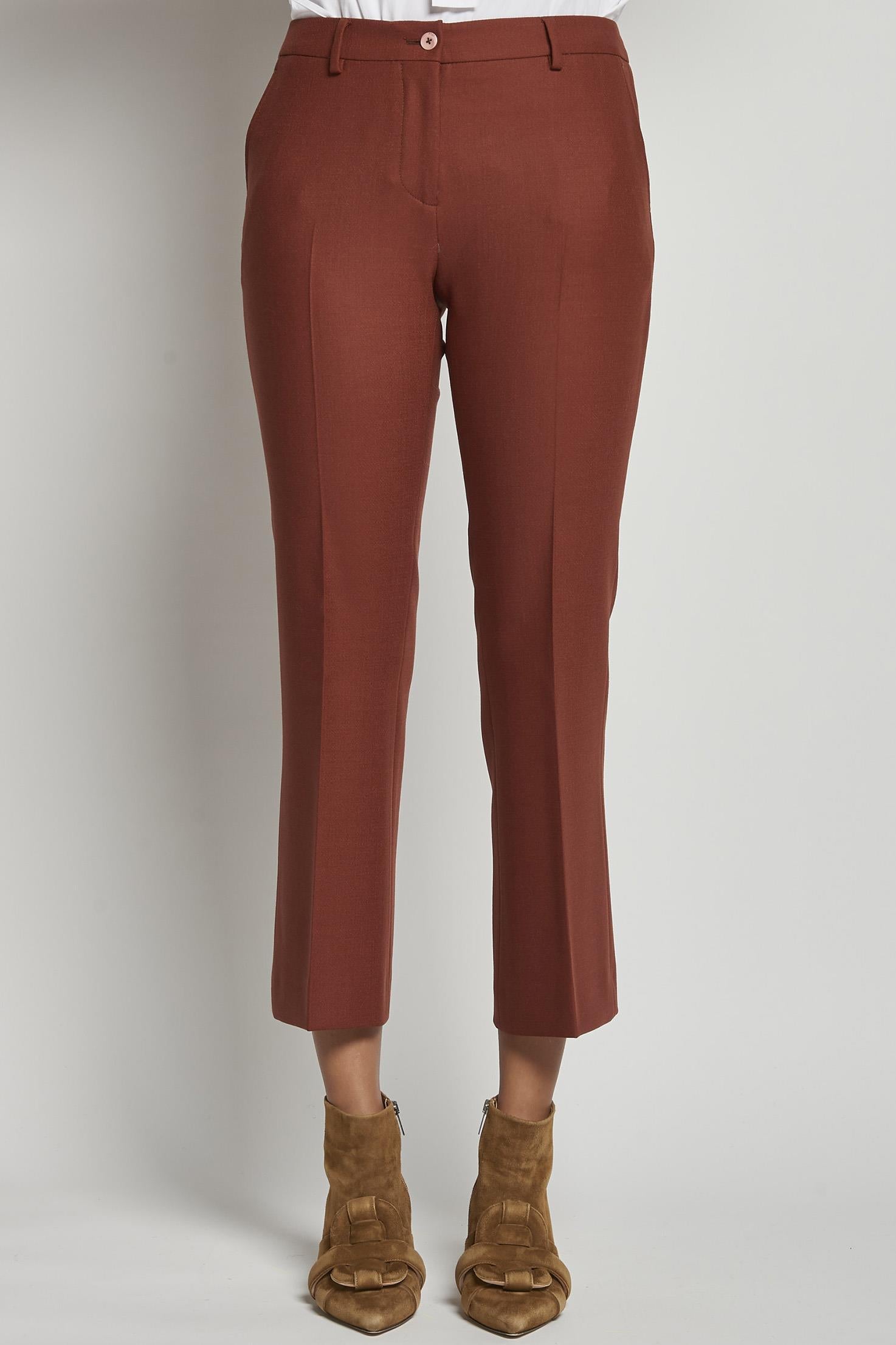 pantalone marrone cropped stretchcomposizione: 53% poliestere, 44% lana, 3% elasthanla modella indossa una taglia 38 ed è alto 1.80 m