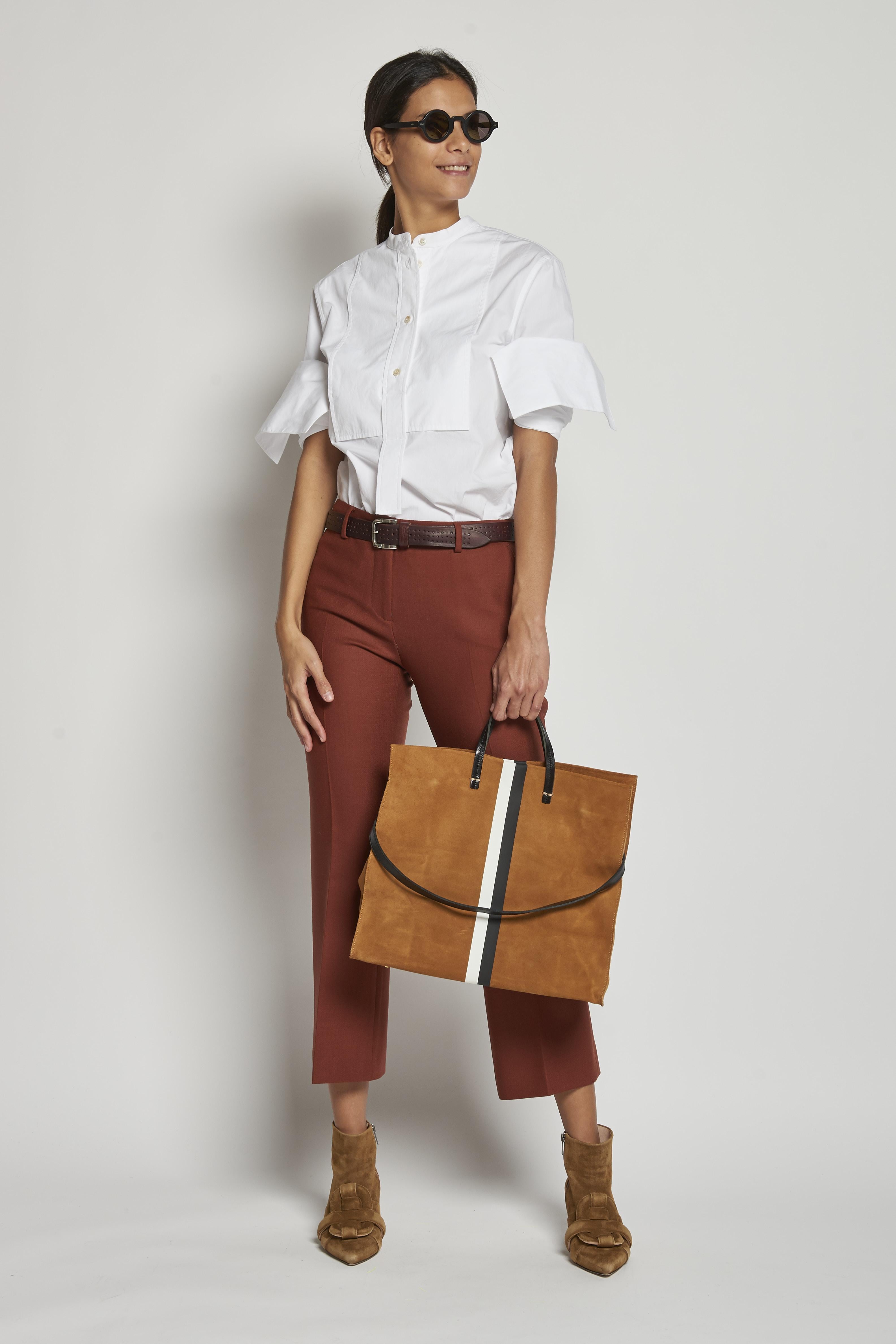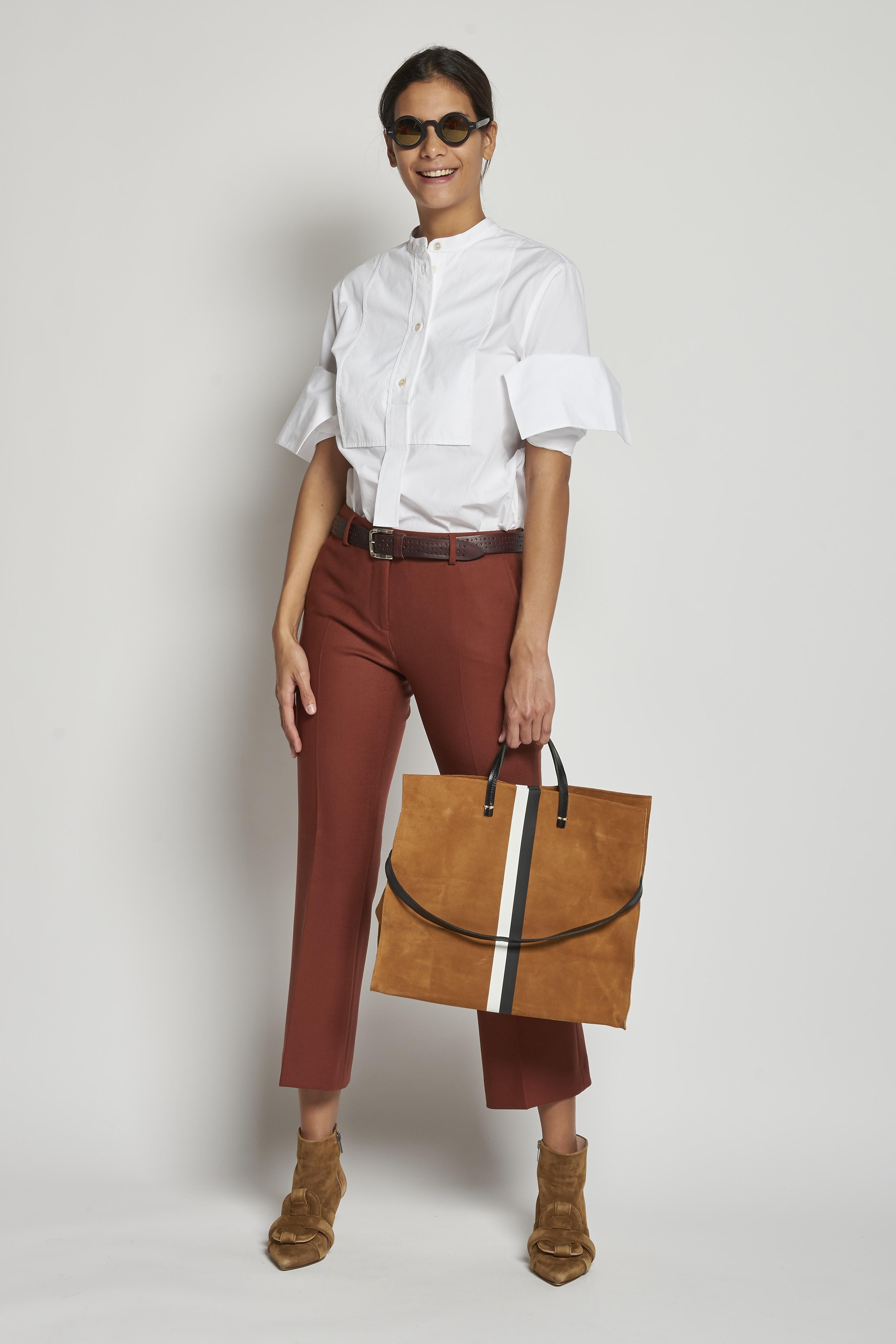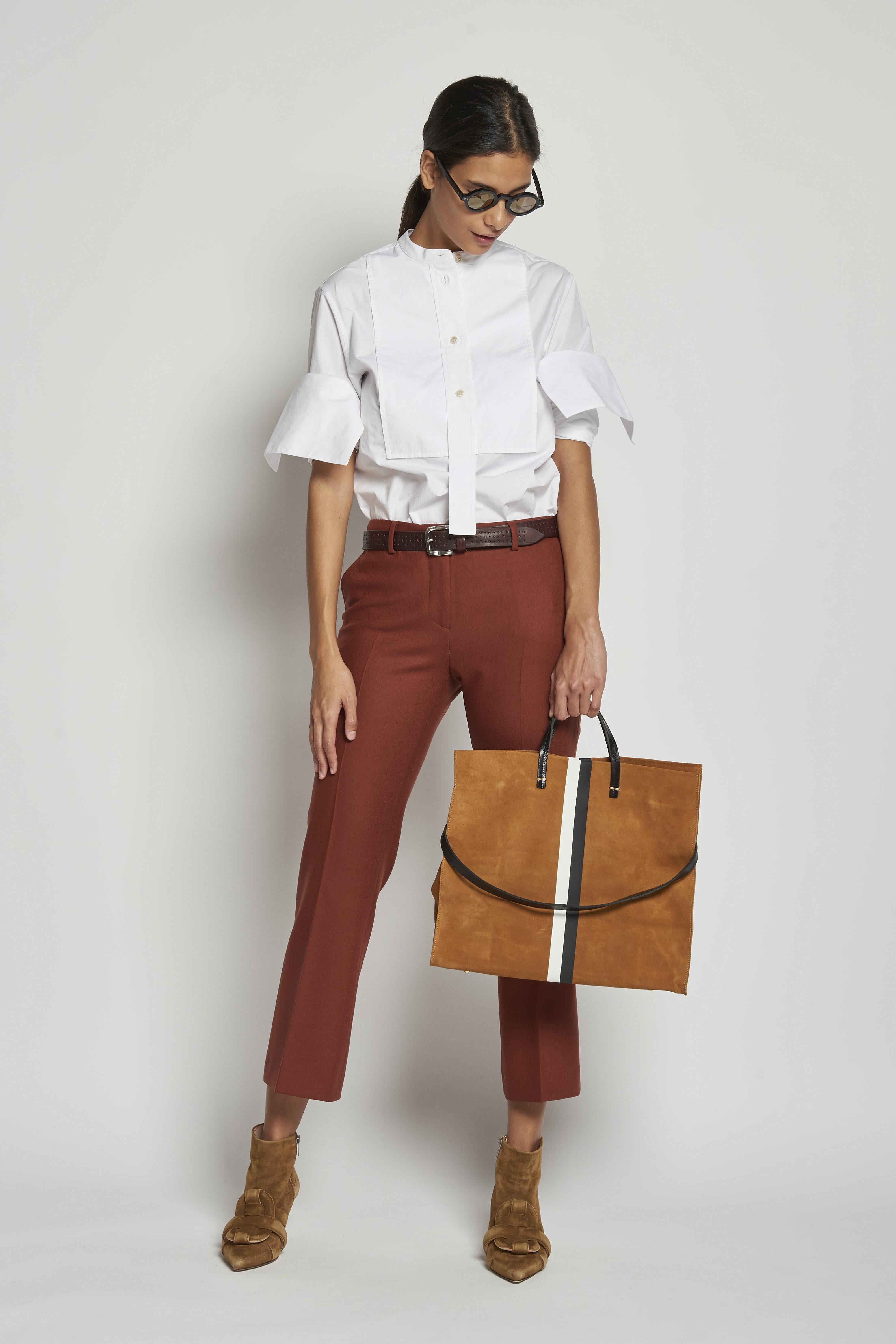 pantalone marrone cropped stretchcomposizione: 53% poliestere, 44% lana, 3% elasthanla modella indossa una taglia 38 ed è alto 1.80 m