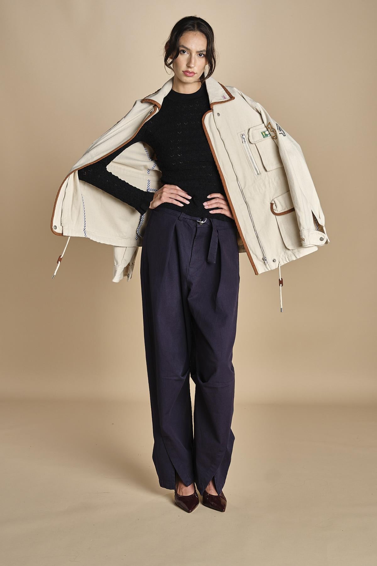 maglia girocollo jaquard. La modella è alta 180 cm e indossa una taglia xs. 83% VISCOSA 17% ELITE