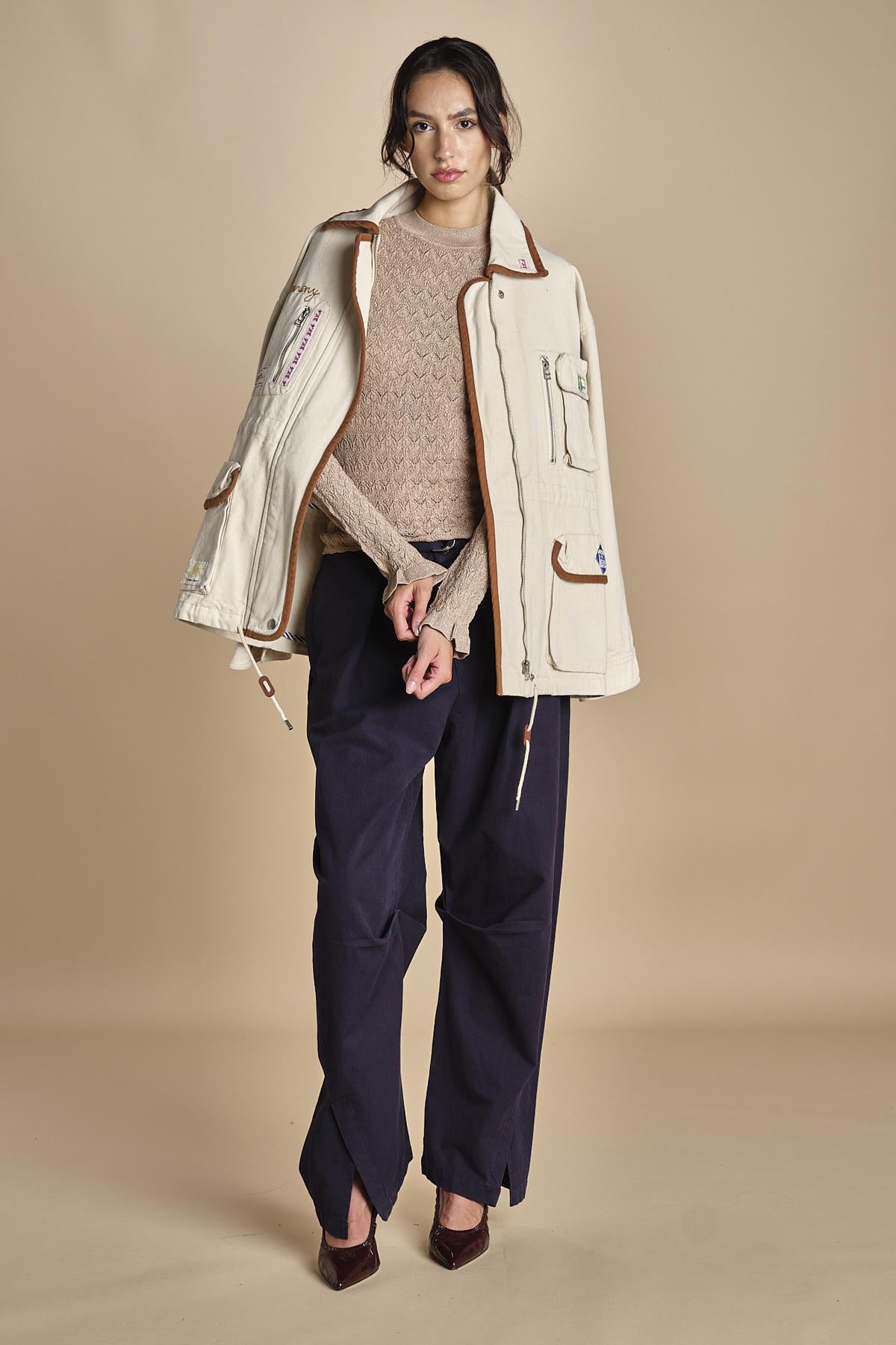 maglia girocollo jaquard. La modella è alta 180 cm e indossa una taglia xs.83% VISCOSA 17% ELITE