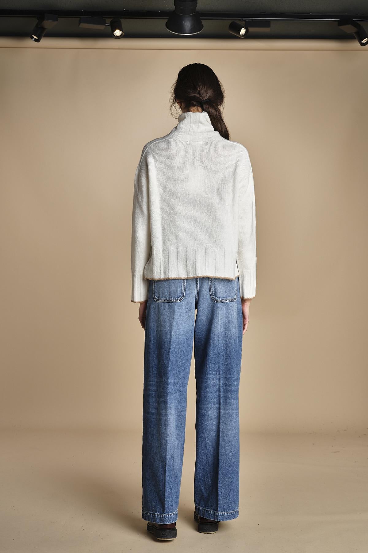 maglia dolcevita over. La modella è alta 180 cm e indossa una taglia S. 75% LANA 25% POLIAMMIDE