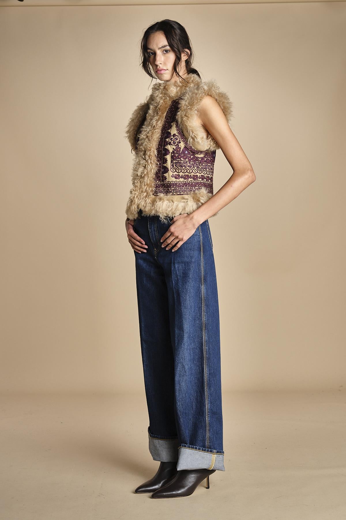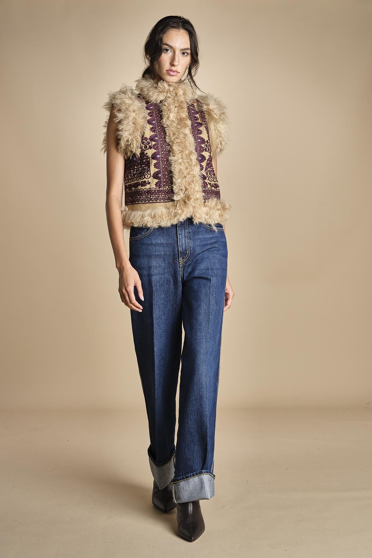 gilet ricamato con montone. La modella è alta 180 cm e indossa una taglia XS. 100% COTONE