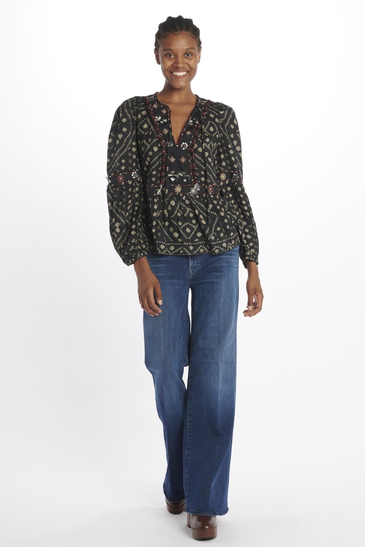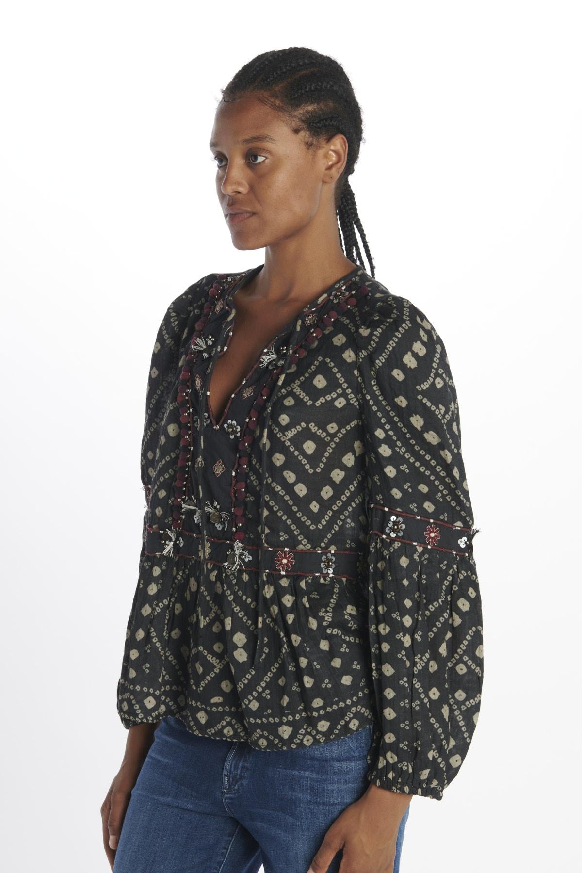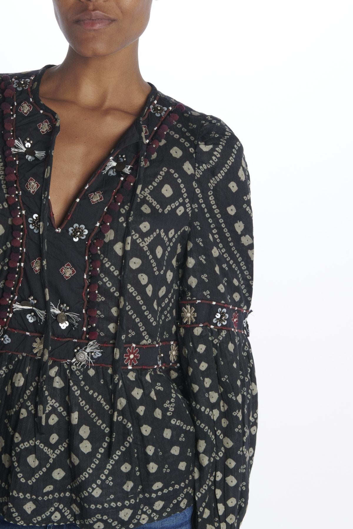 Camicia by Sea Ny stampa e pailettes. La modella è alta 174 cm e indossa la taglia S. Composizione: 100% Cotone.