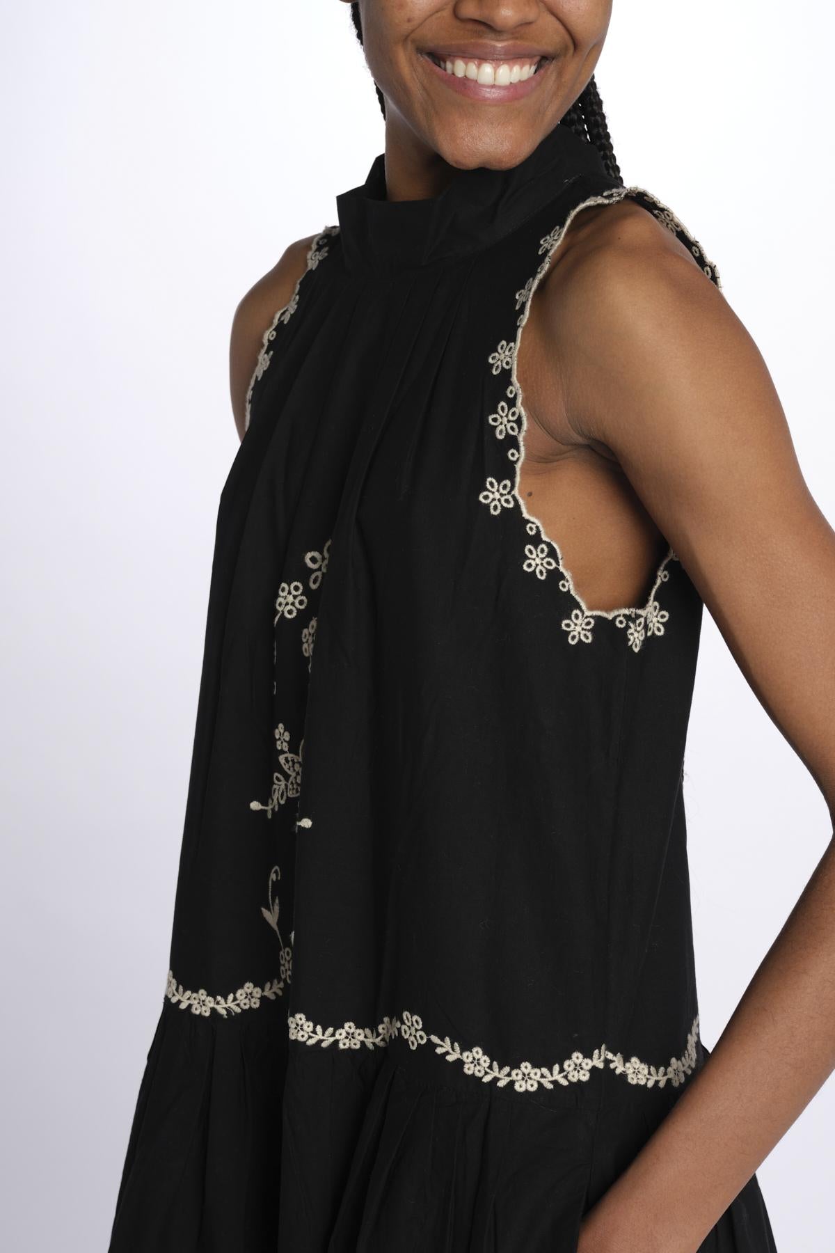 Abito KINGSLEY lunguette s/m ricamo fiori by sea ny. La modella è alta 174 cm e indossa una S. Composizione: 100% cotone.