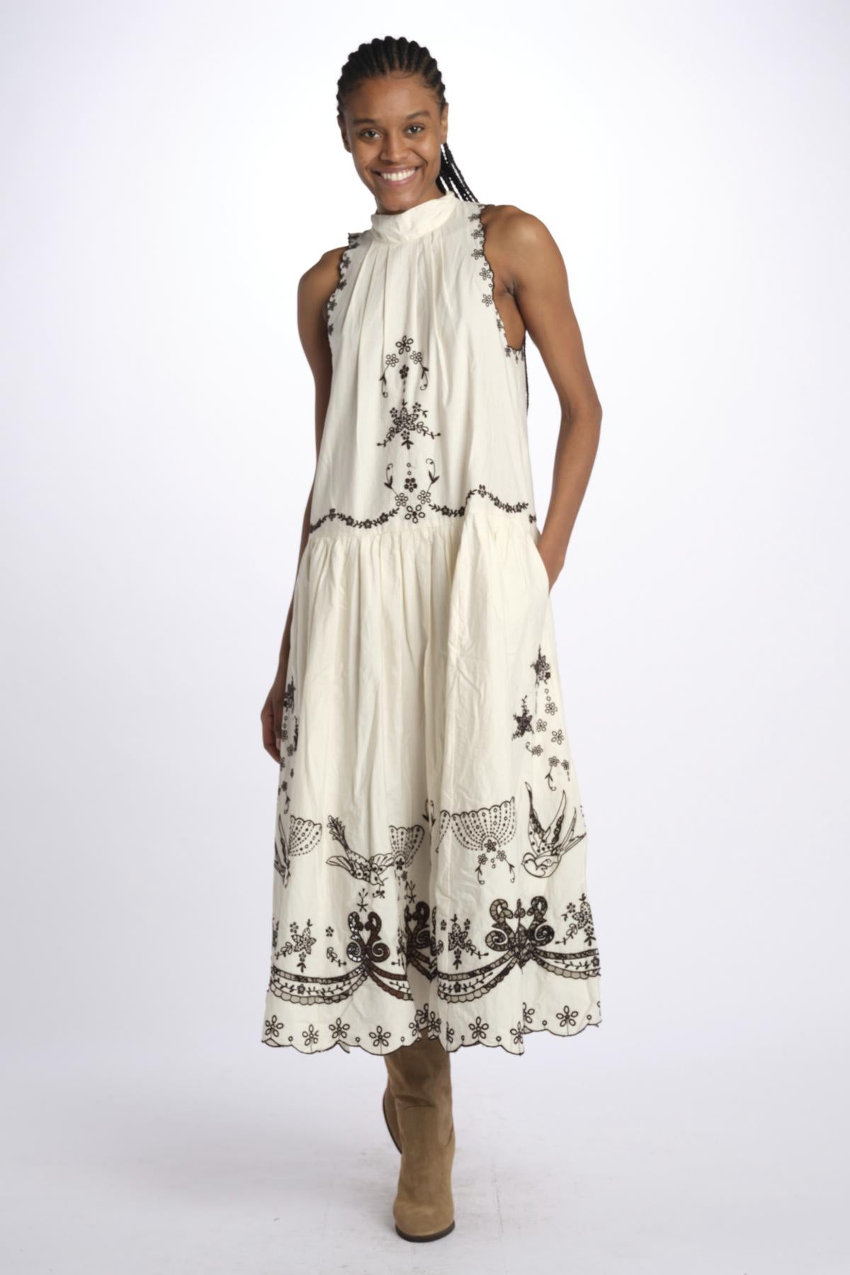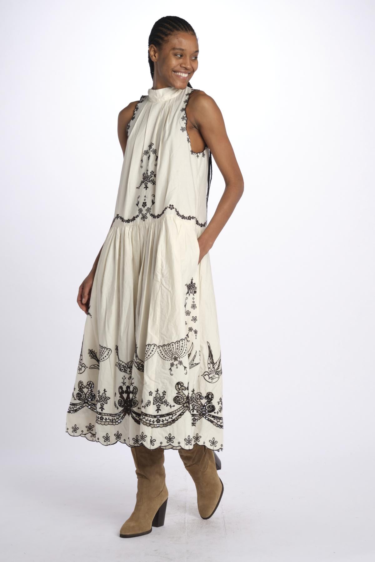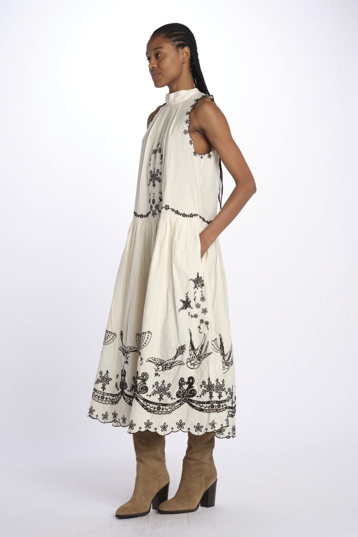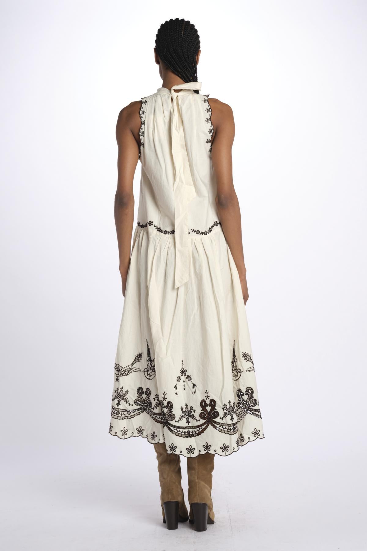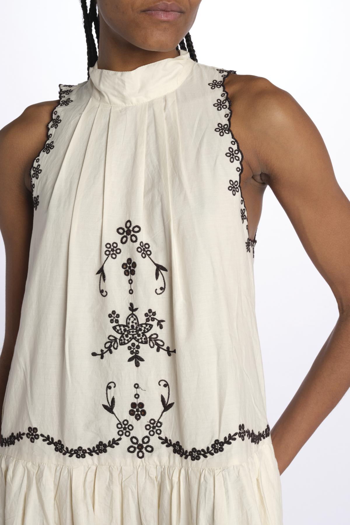Abito KINGSLEY lunguette s/m ricamo fiori by sea ny. La modella è alta 174 cm e indossa una S. Composizione: 100% cotone.
