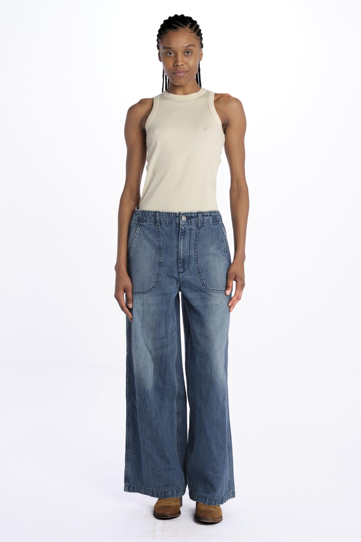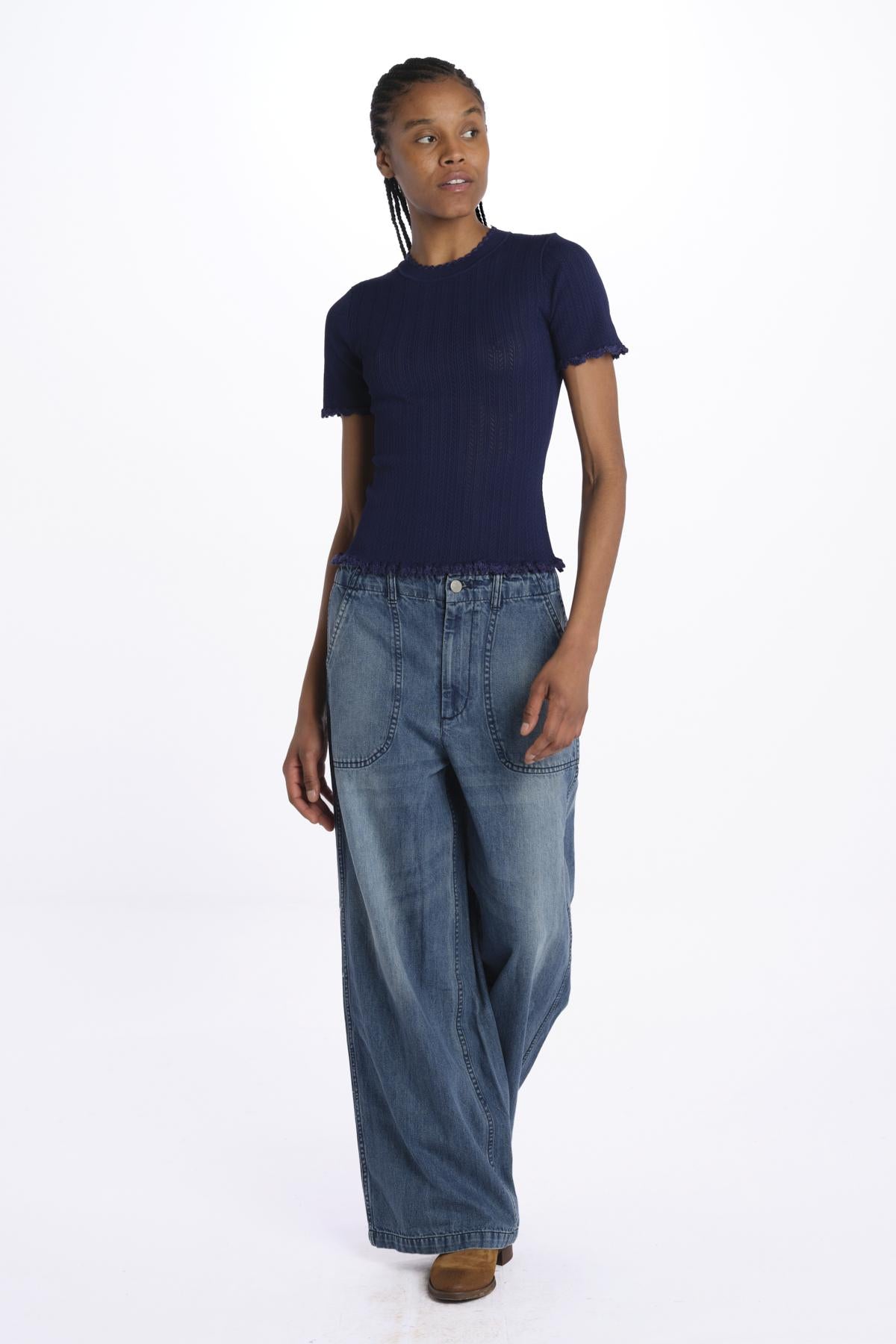 AMARI denim ricamati by sea ny. La modella è alta 174 cm e indossa una 4. Composizione: 100% cotone.