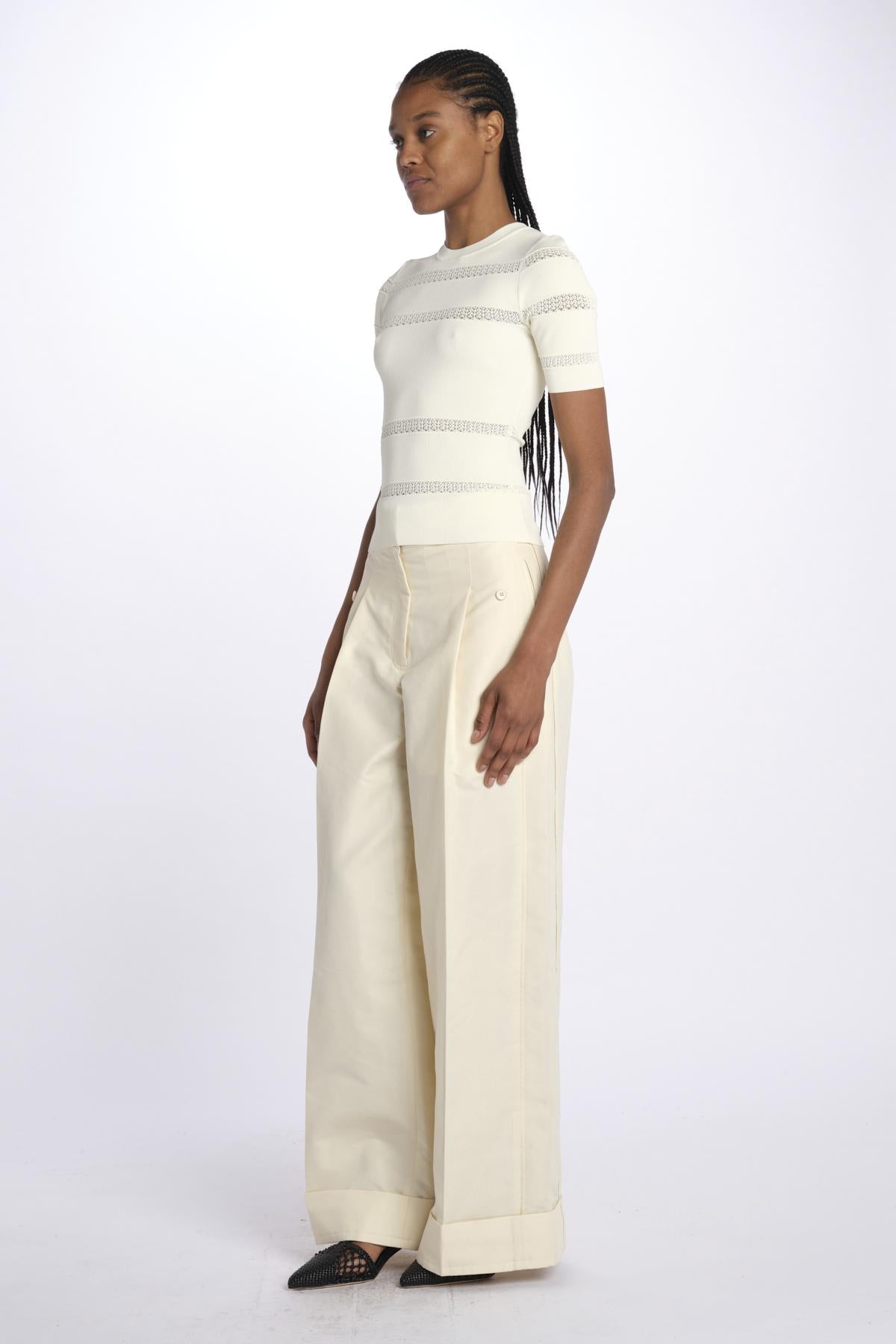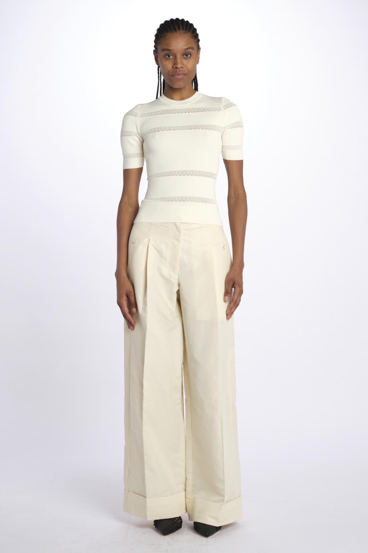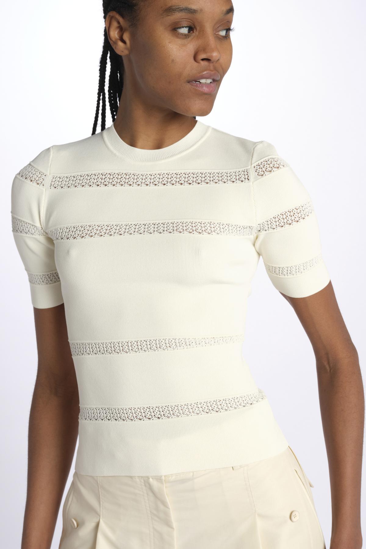 Maglia DEVON m/c inserto pizzo by sea ny. La modella è alta 174 cm e indossa una XS. Composizione: 83% viscosa, 17% elite.