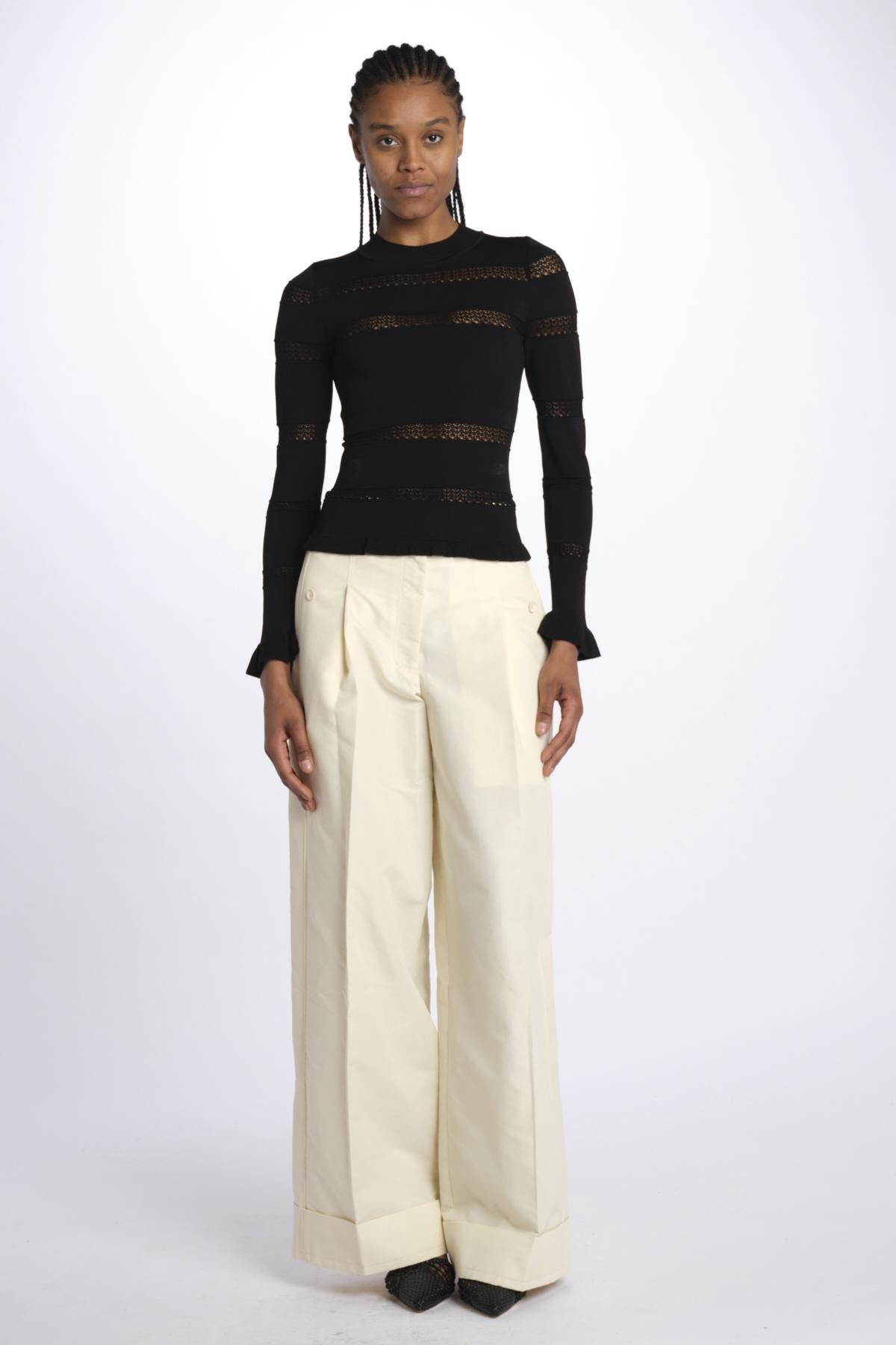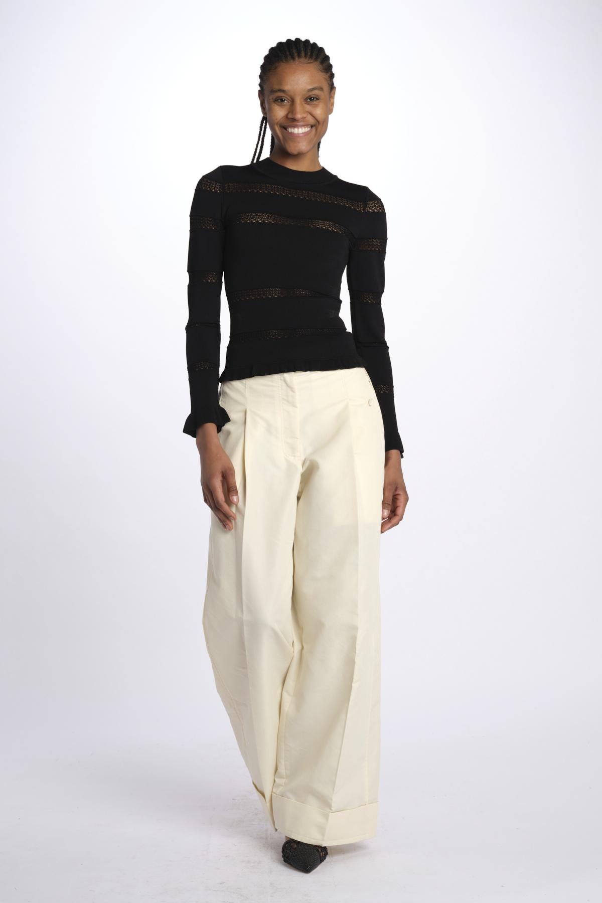 Maglia DEVON m/l inserto pizzo by sea ny. La modella è alta 174 cm e indossa una XS. Composizione: 83% viscosa, 17% elite.