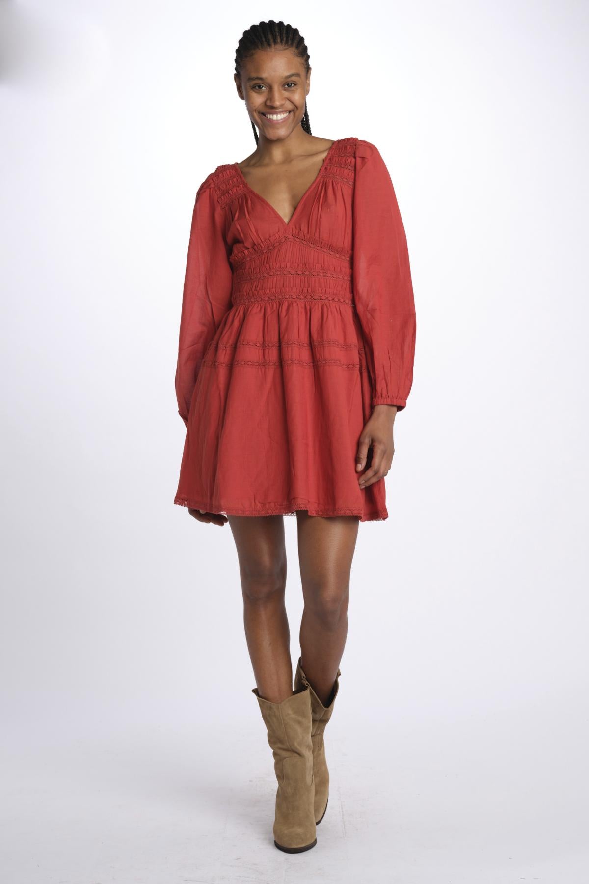 Mini abito NOMI voille pieghe by sea ny. La modella è alta 174 cm e indossa una 2. Composizione: 55% cotone, 45% viscosa.