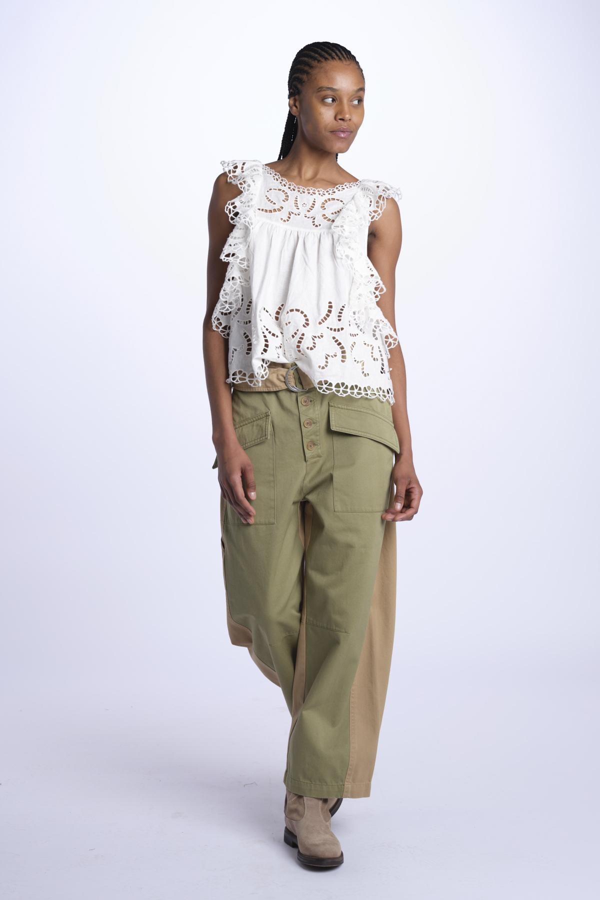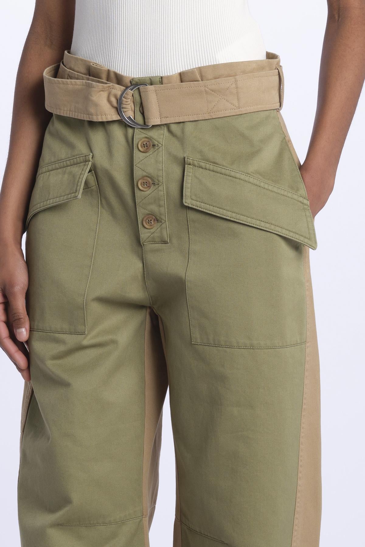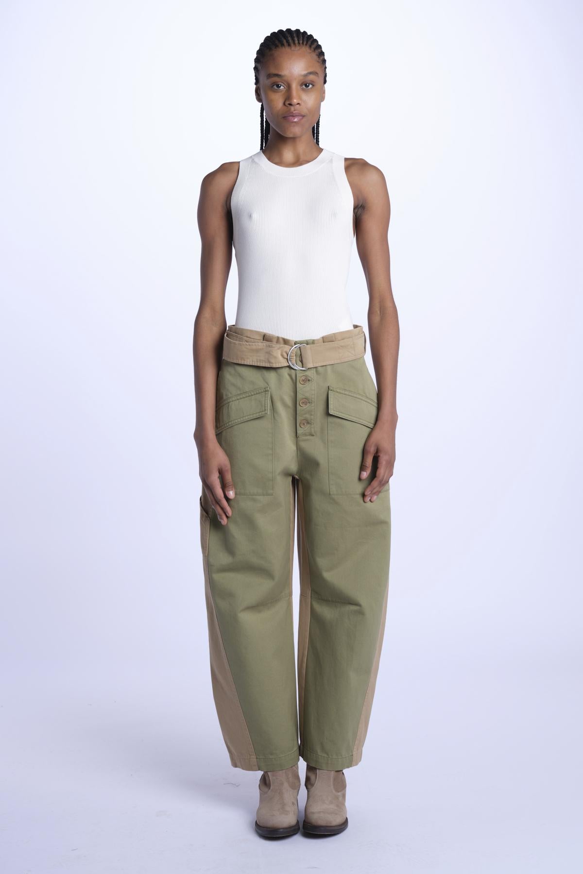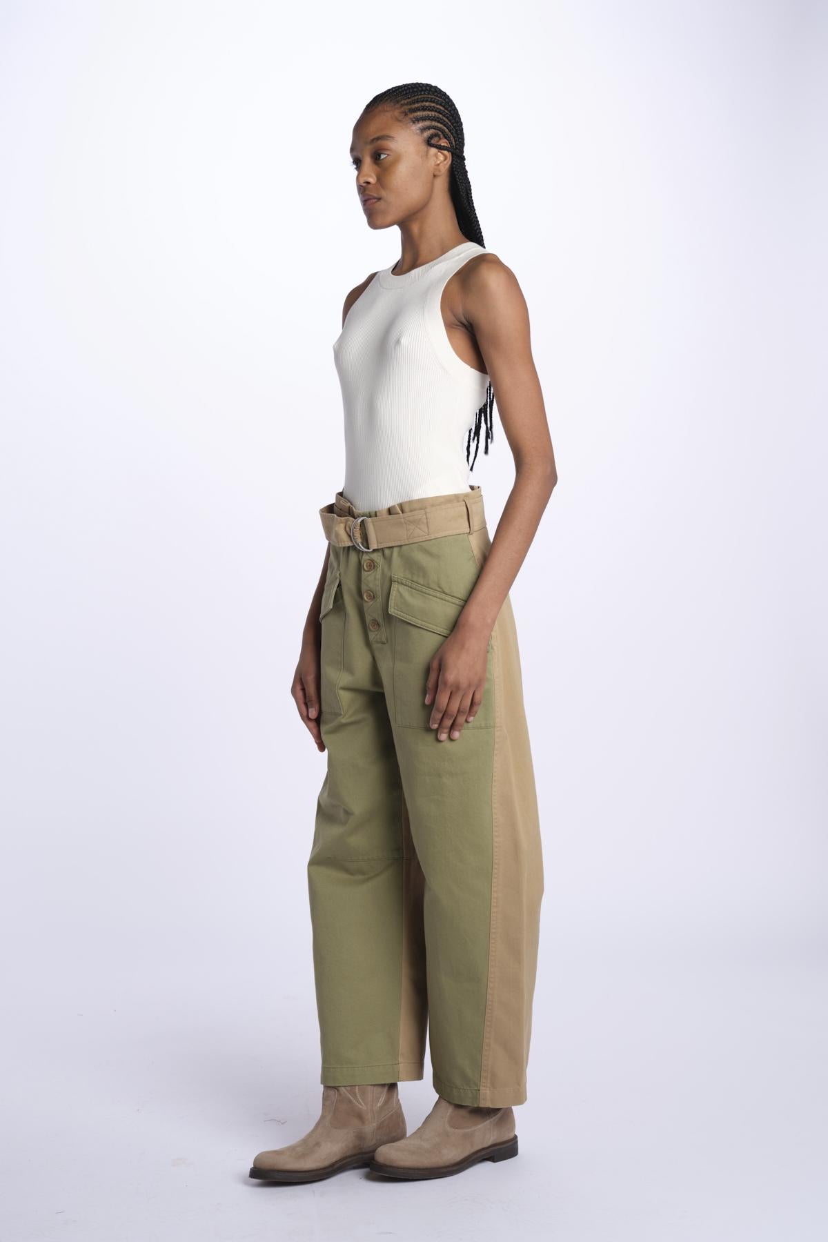 Pantaloni CAROLINA bicolore by sea ny. La modella è alta 174 cm e indossa una taglia 4. Composizione: 100% cotone.