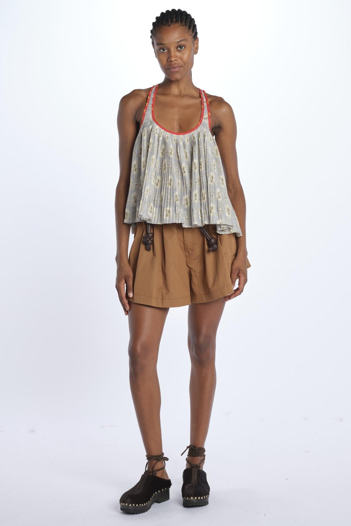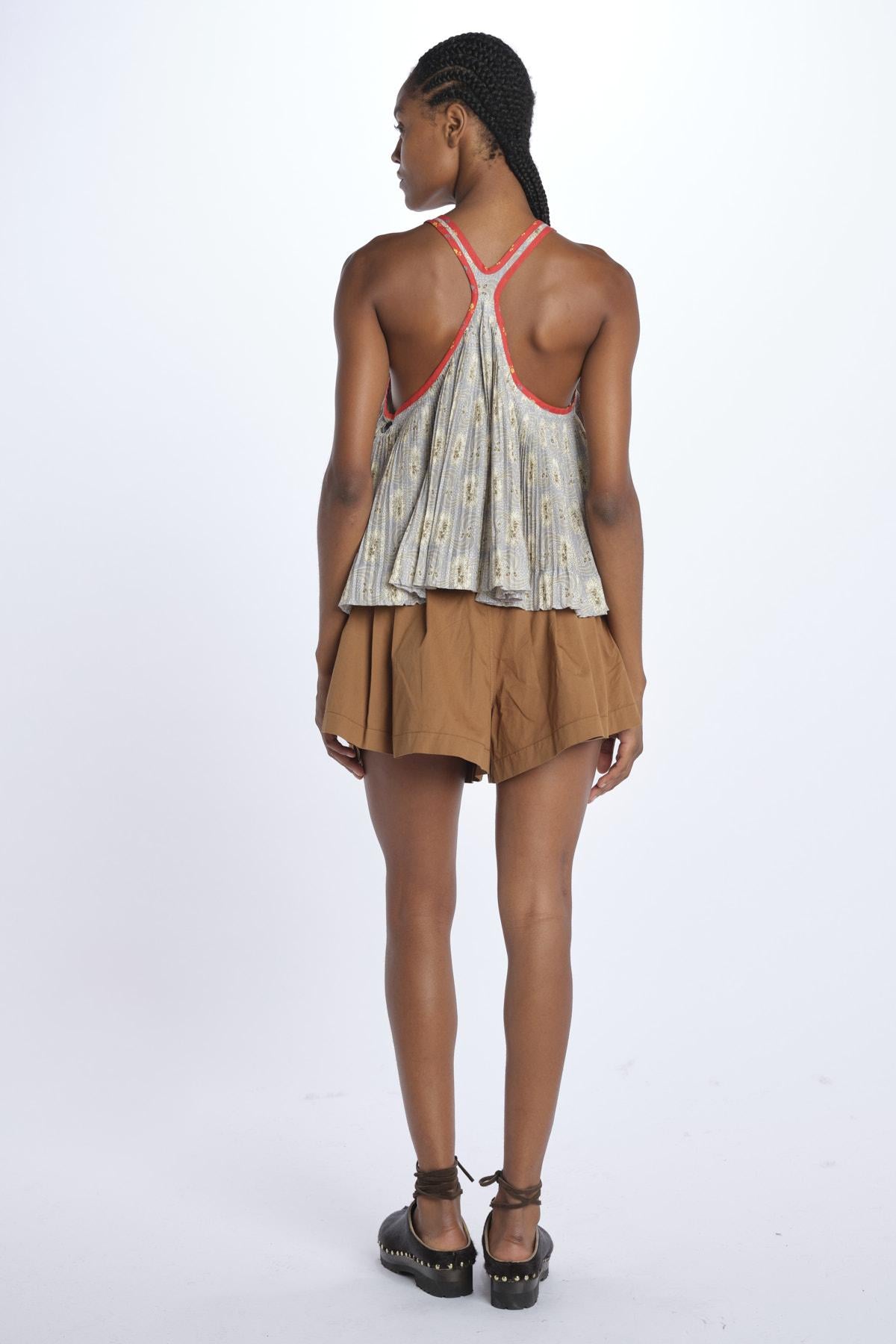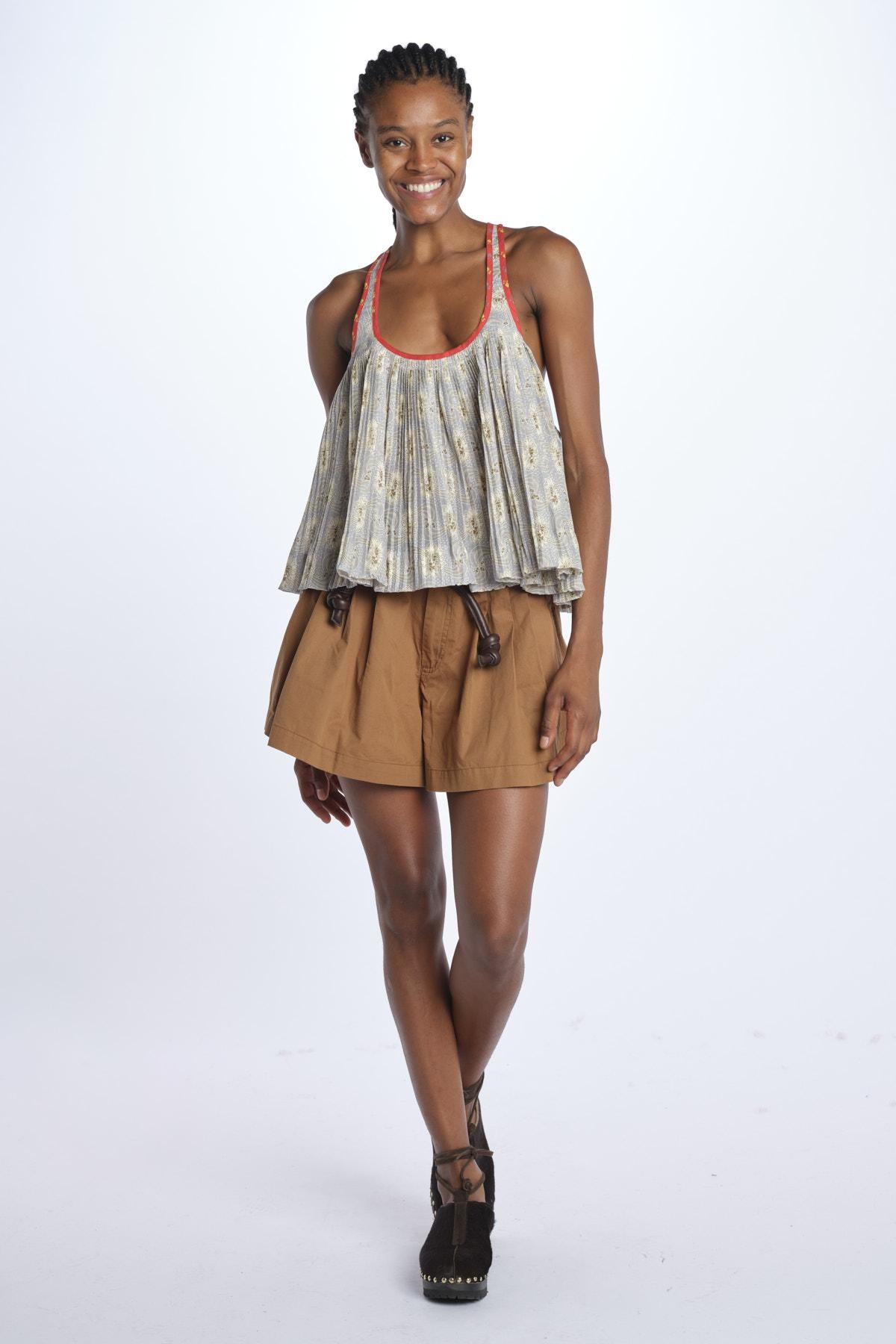 Top by Sea Ny stampa plissè. La modella è alta 174 cm e indossa una taglia S. Composizione: 100% cotone.