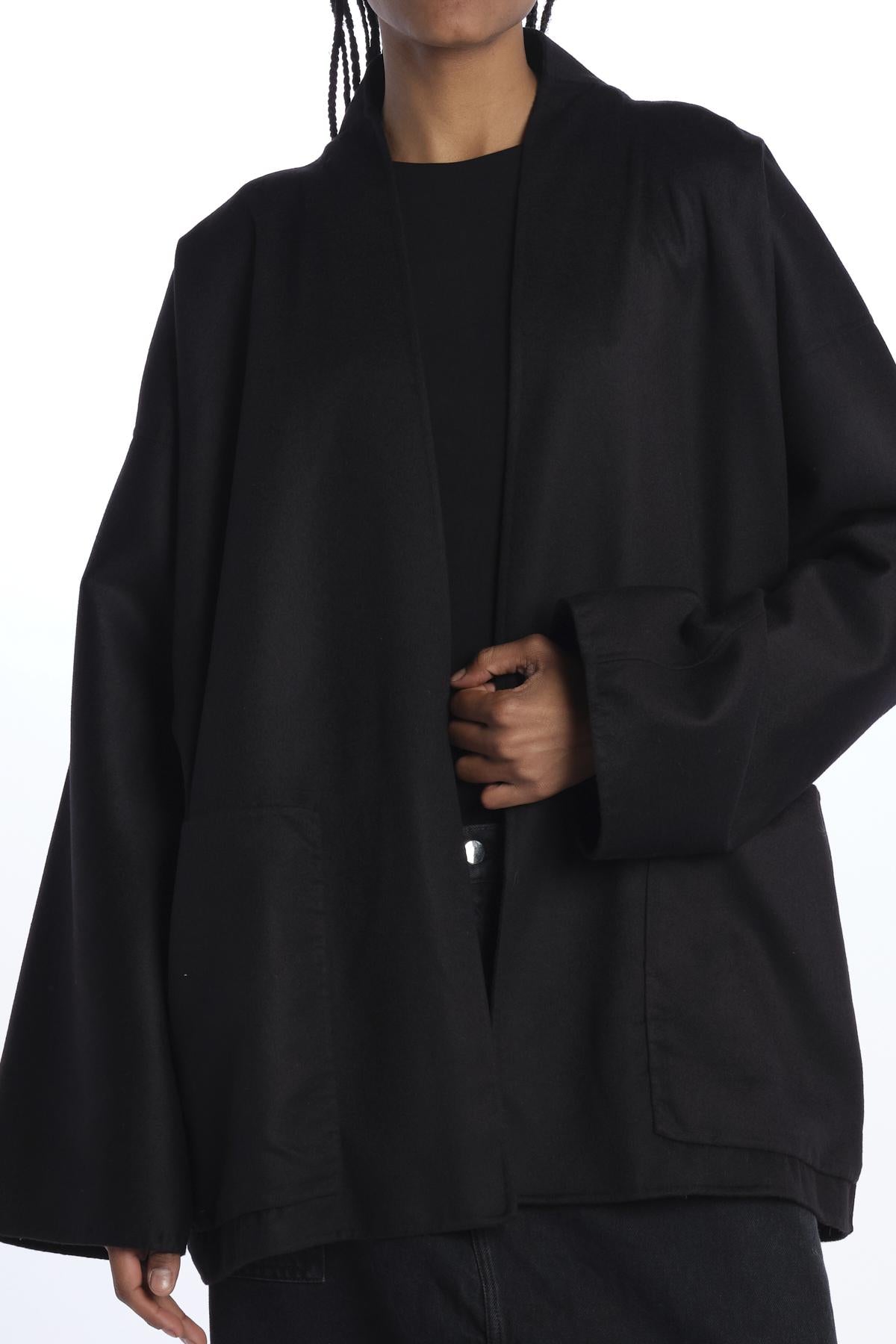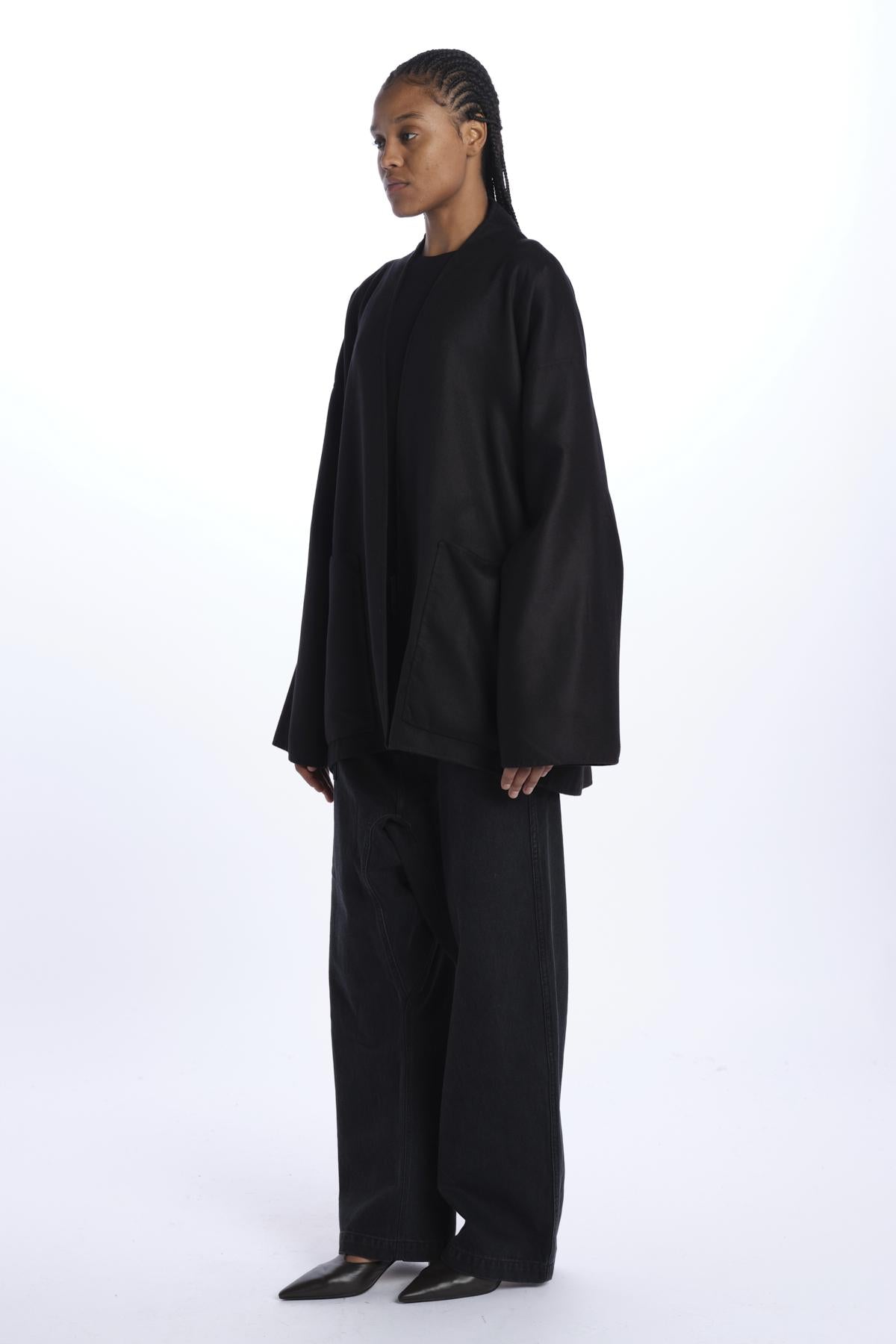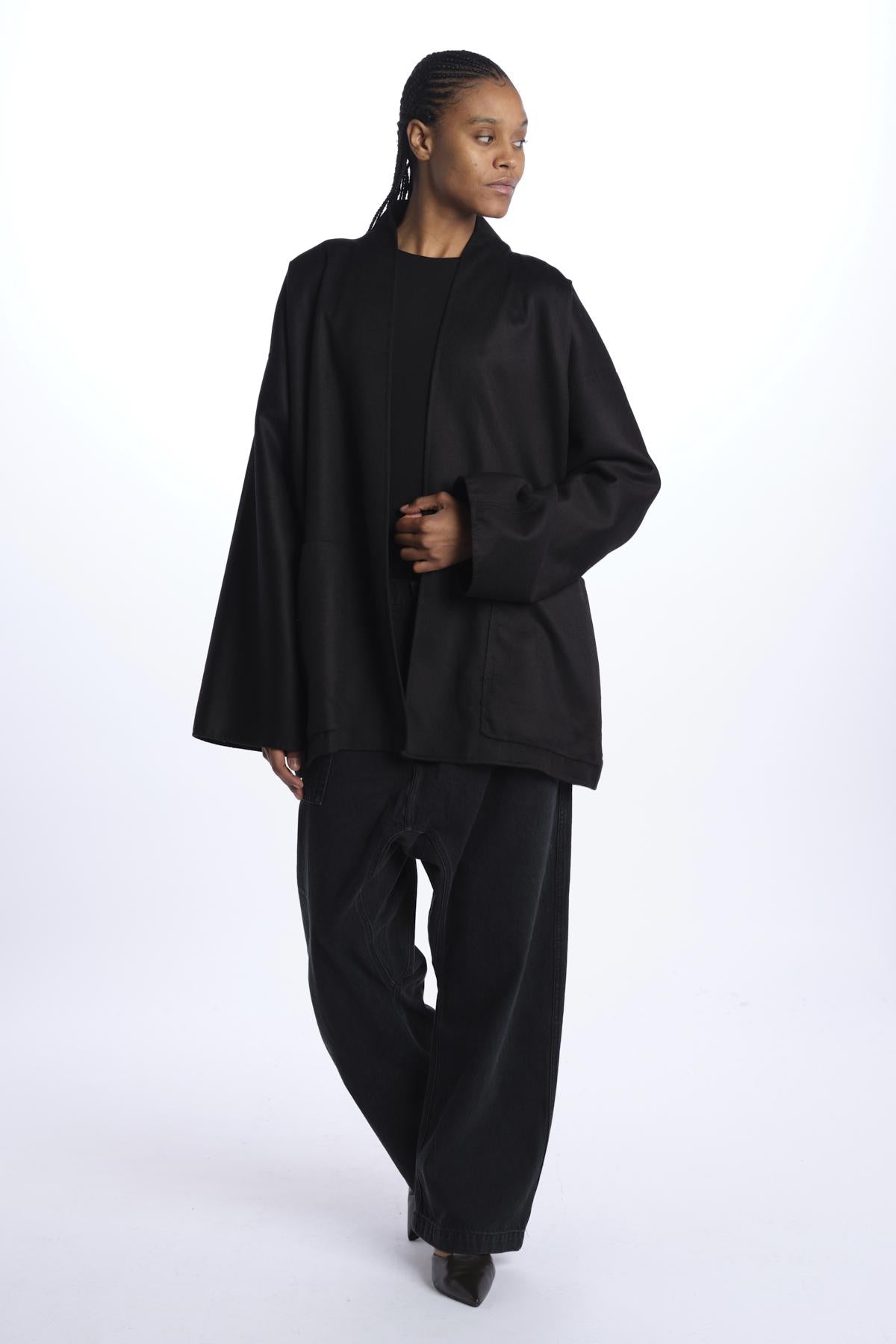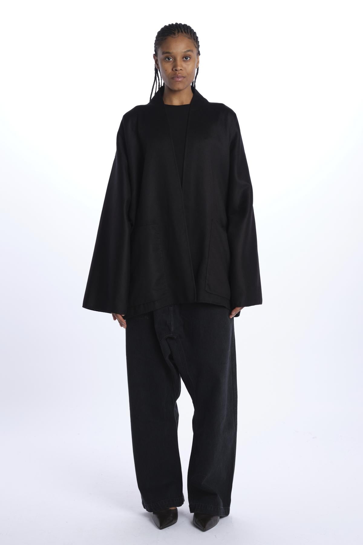 Giacca over lana double by sofie d'hoore. La modella è alta 174 cm e indossa una taglia 38. Composizione: 100% lana.
