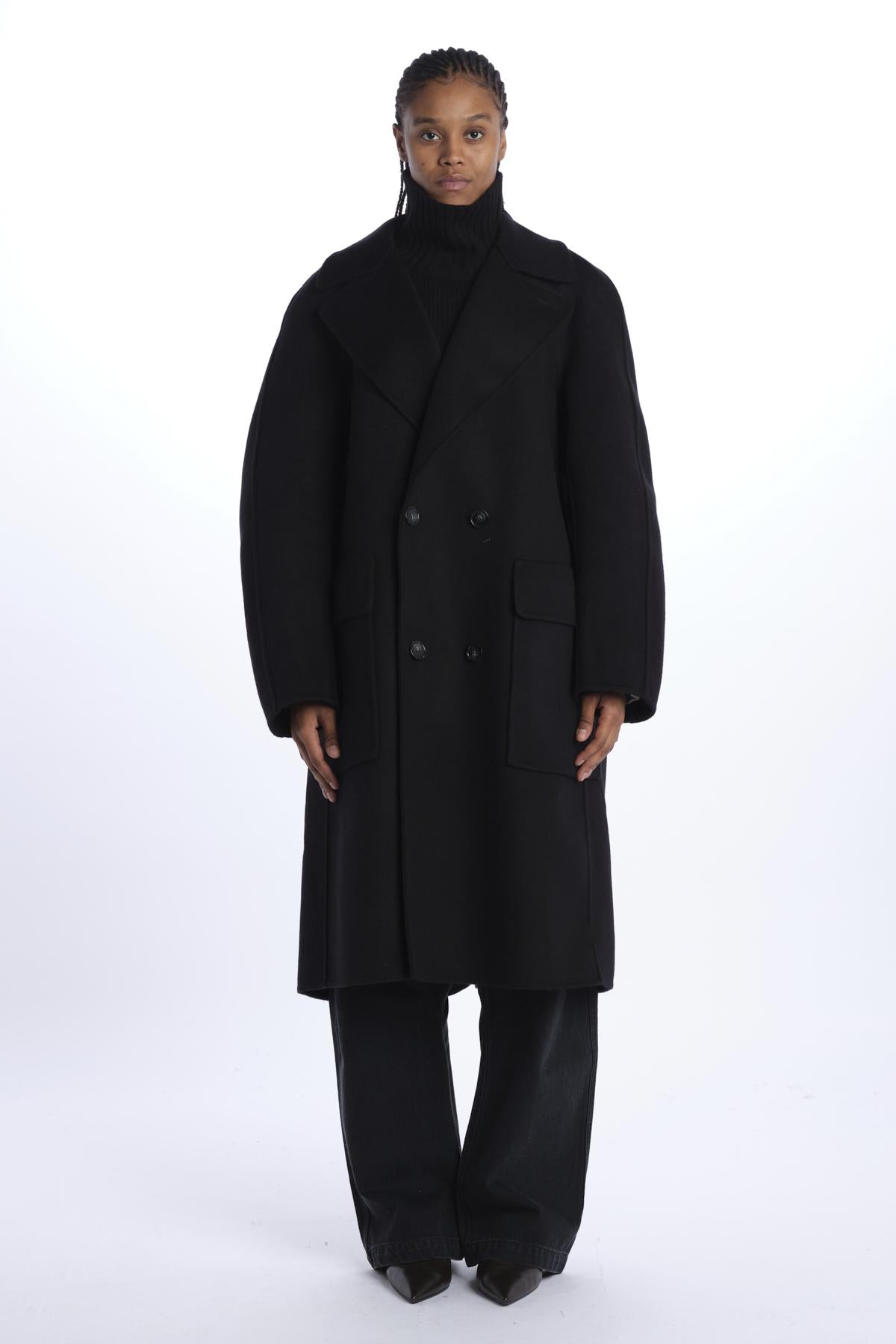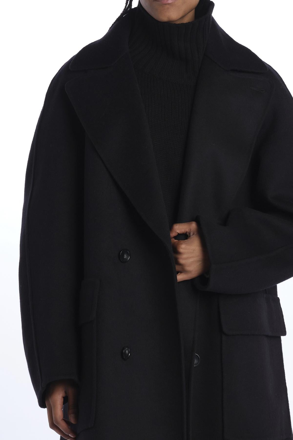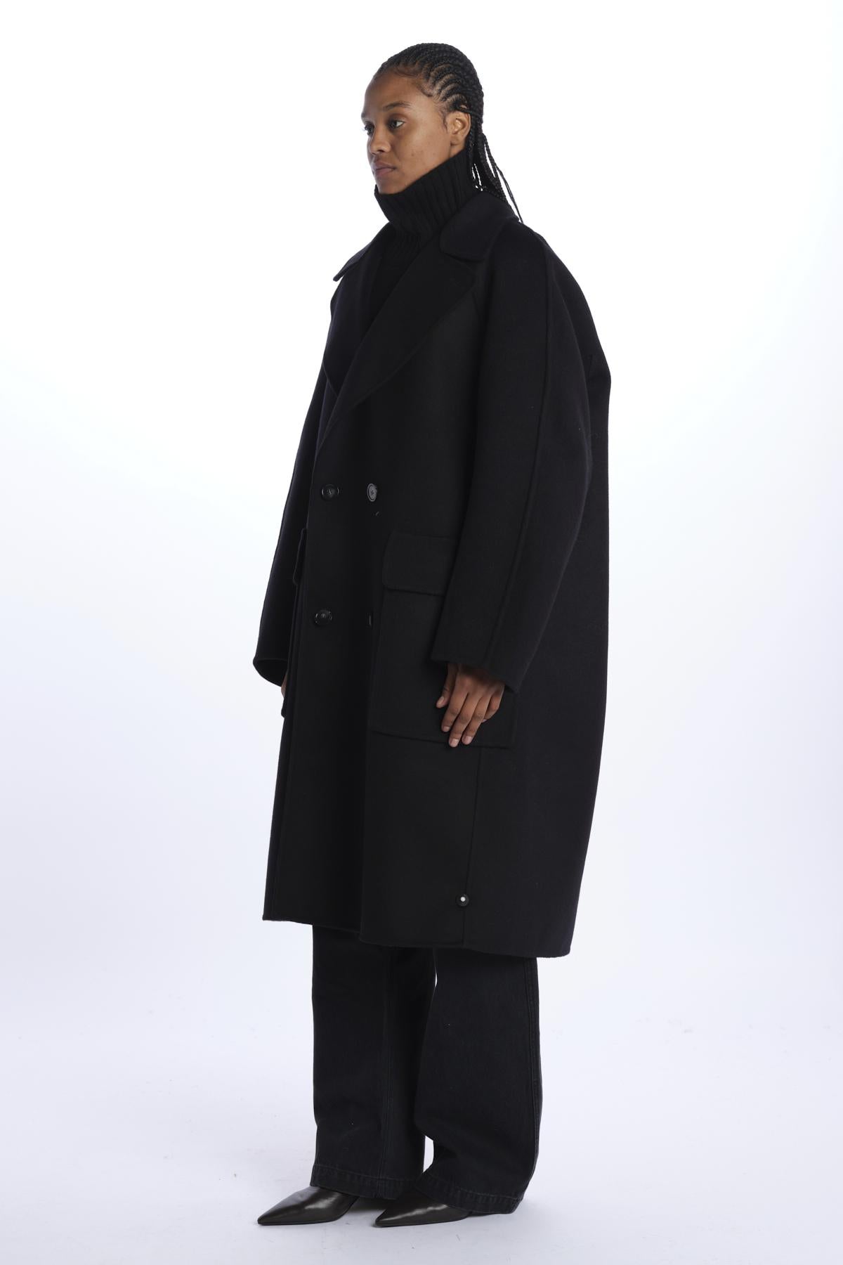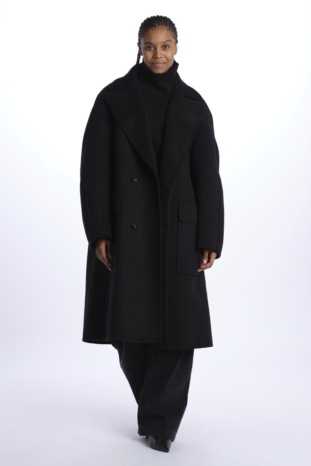 Cappotto doppio petto by sofie d'hoore. La modella è alta 174 cm e indossa una taglia 38. Composizione: 100% lana.