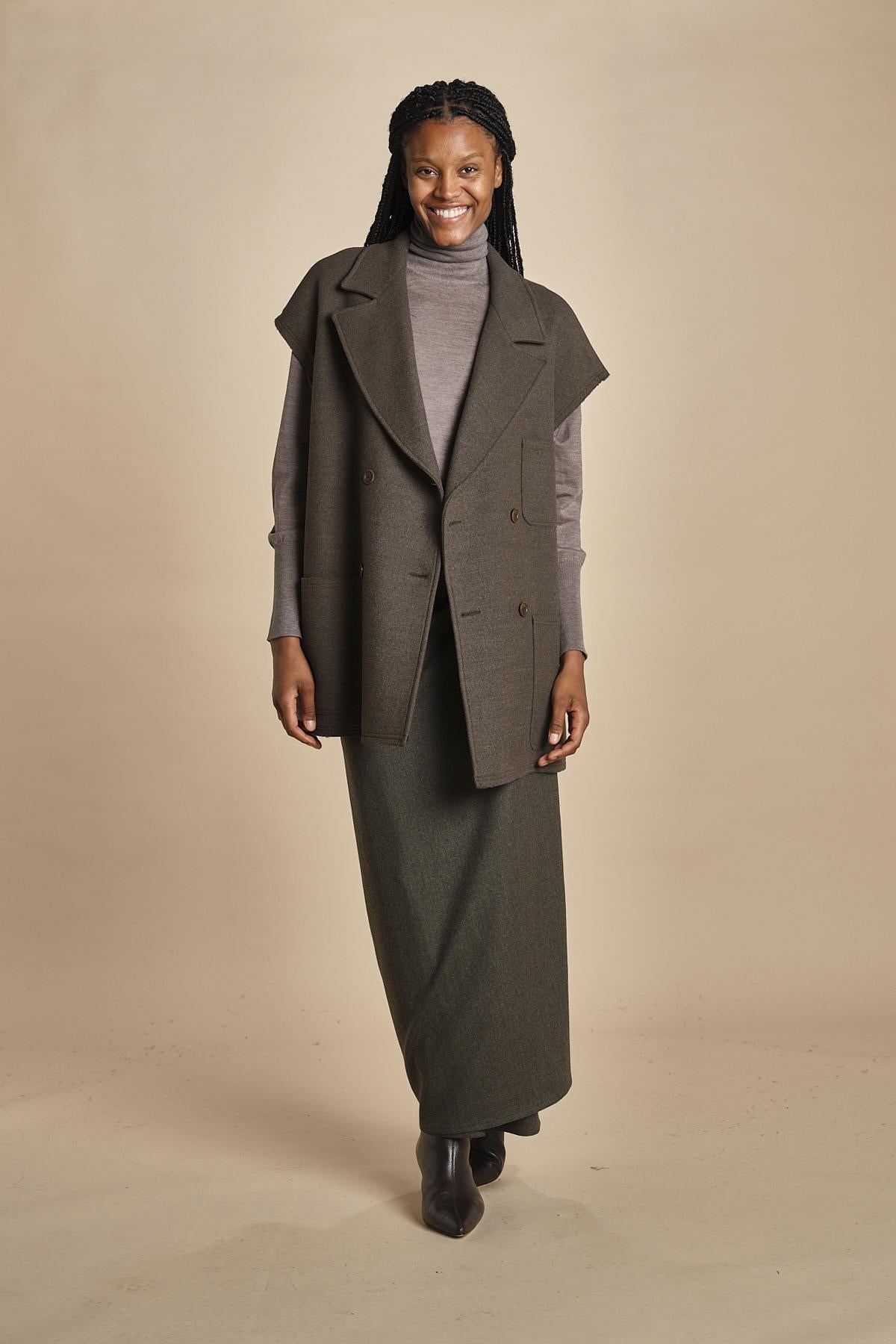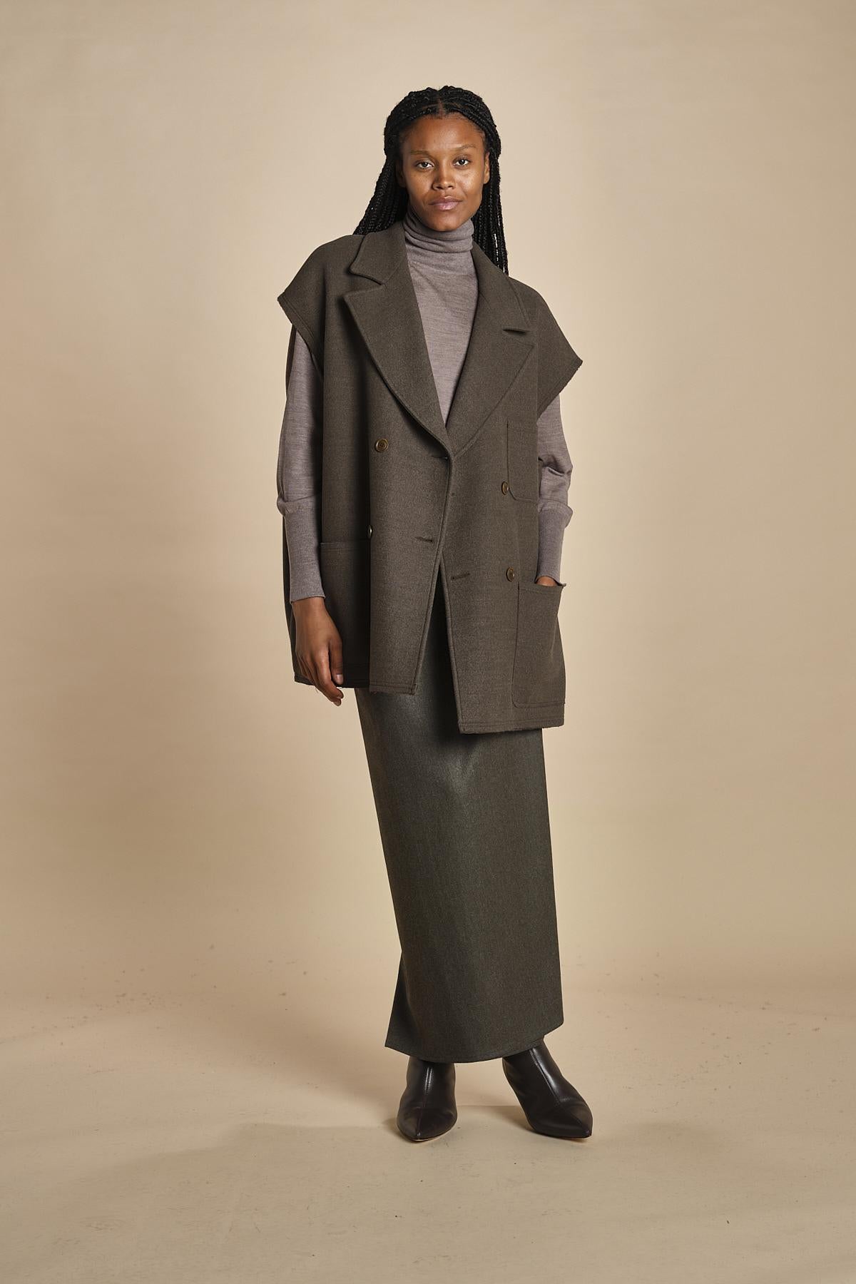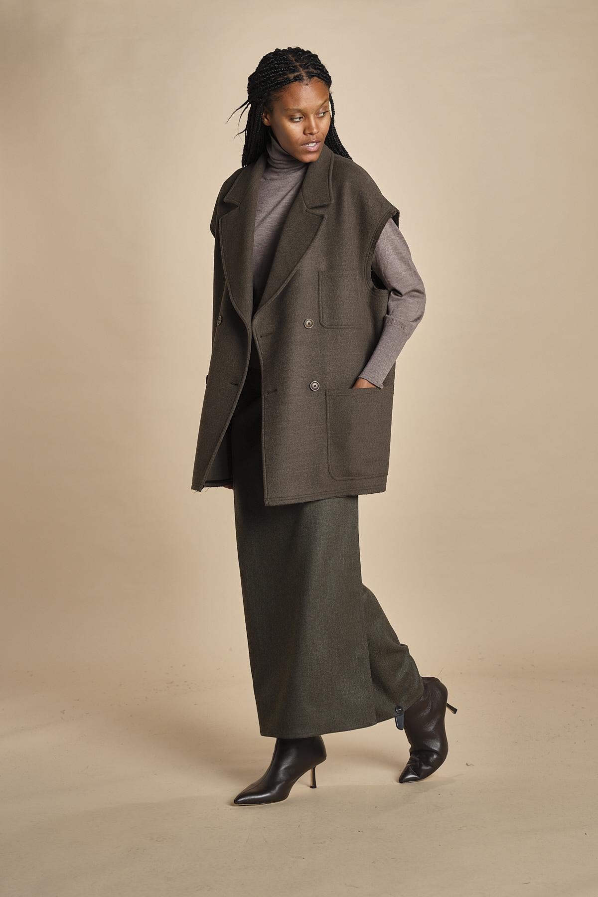 gilet over by dusan. La modella è alta 174 cm e indossa una taglia S. Composizione: 100% cashmere.
