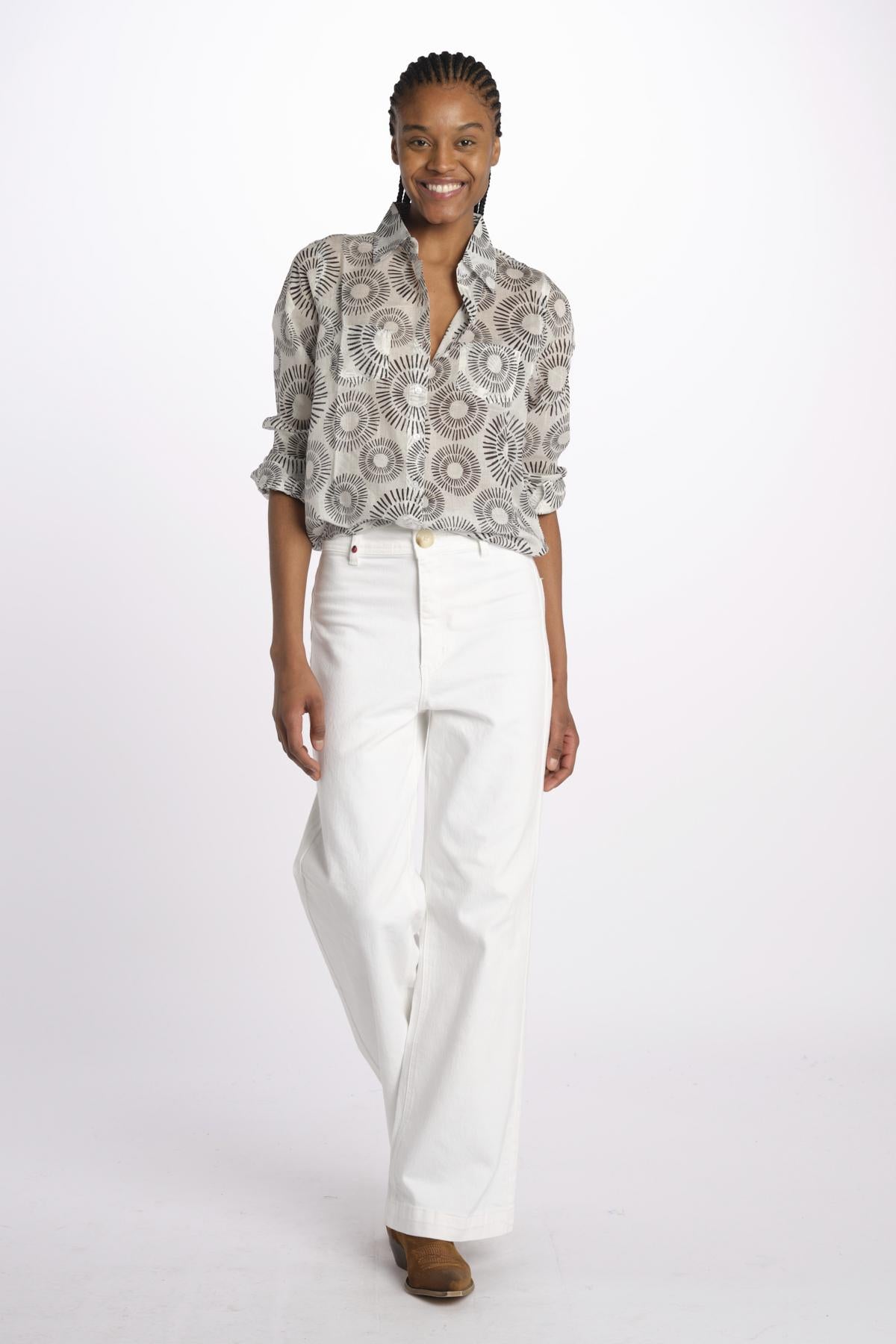 Camicia FLEUR by terre rouge. La modella è alta 174 cm e indossa una M. Composizione: 100% cotone.
