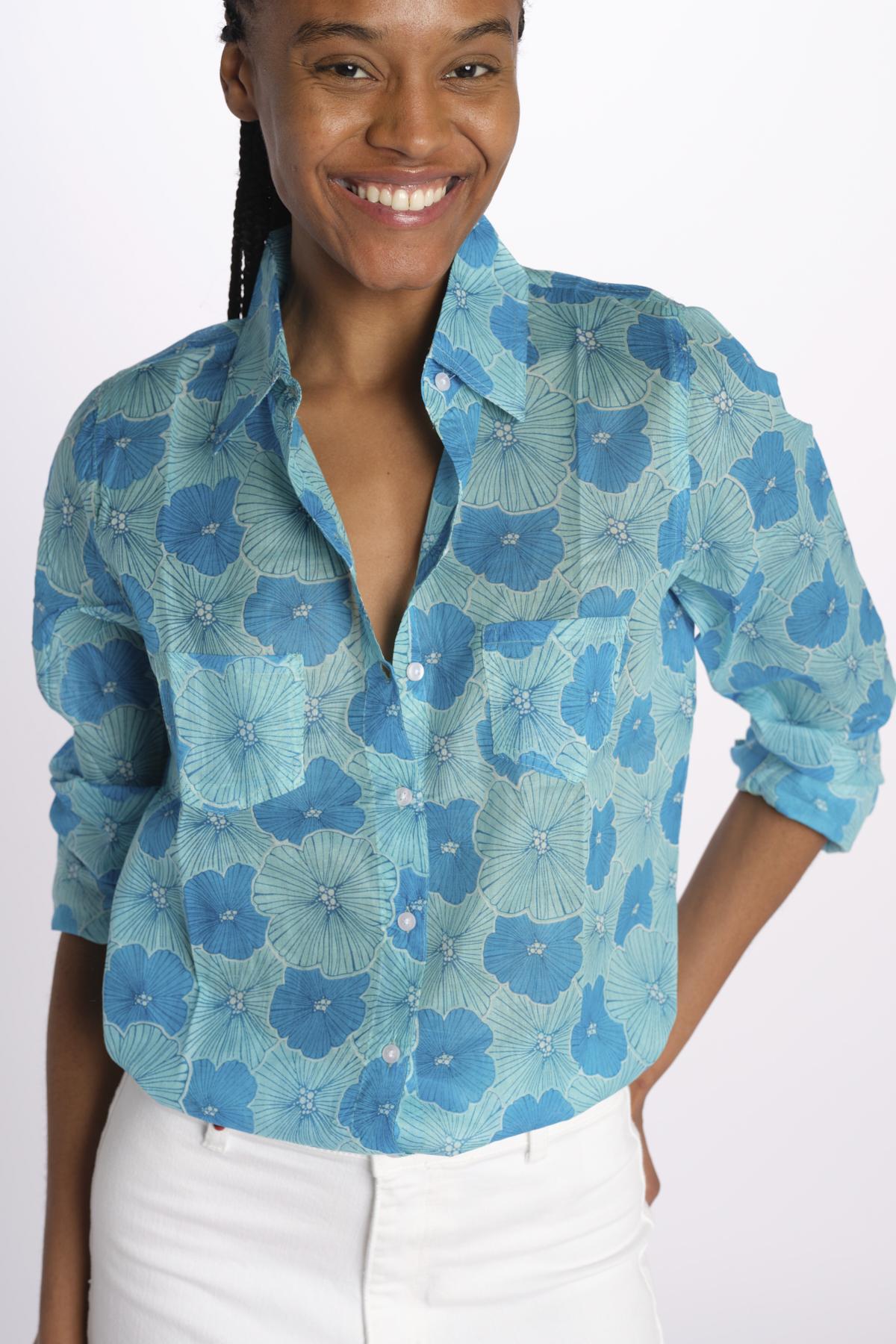 Camicia FLEUR by terre rouge. La modella è alta 174 cm e indossa una M. Composizione: 100% cotone.