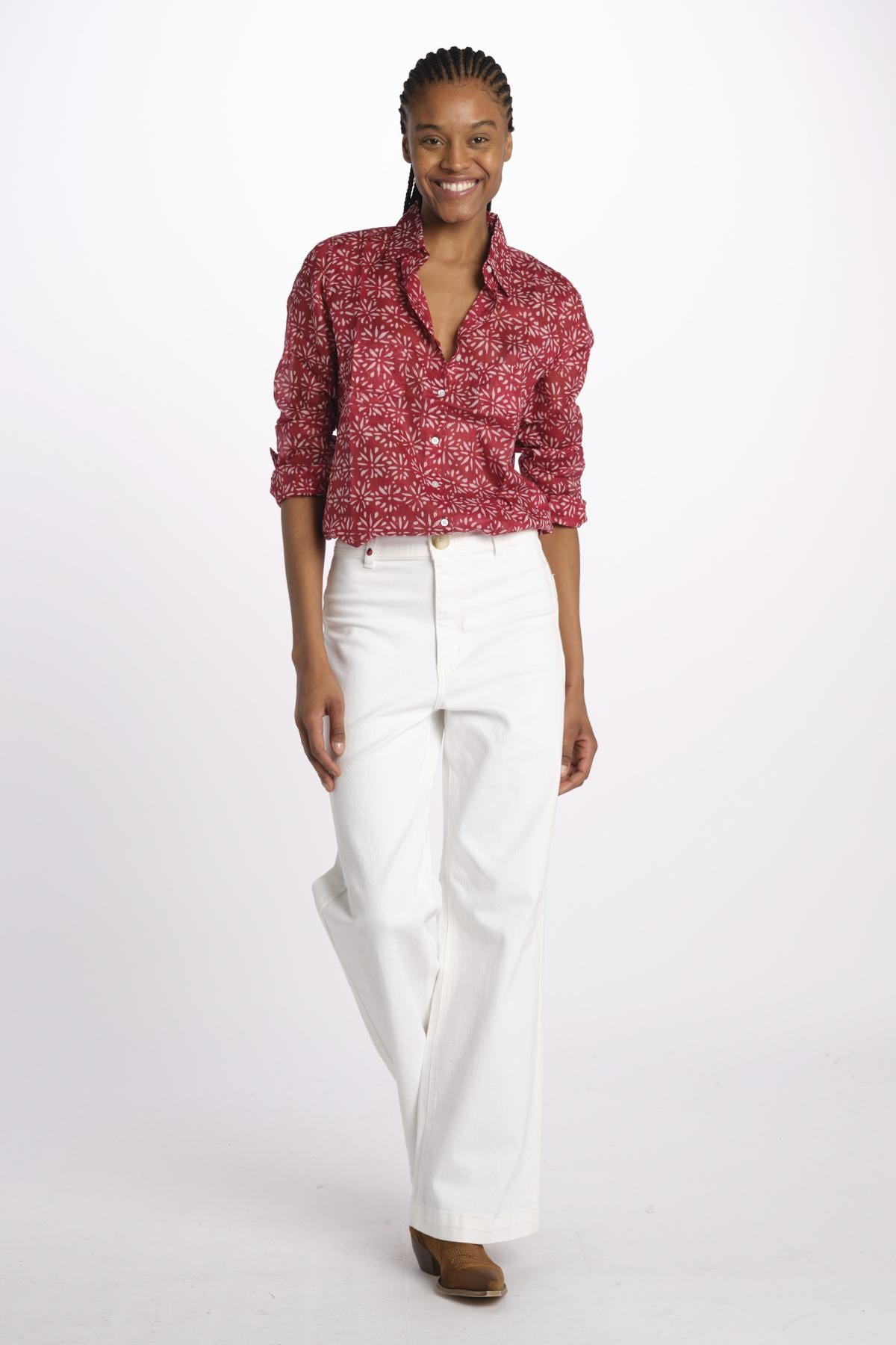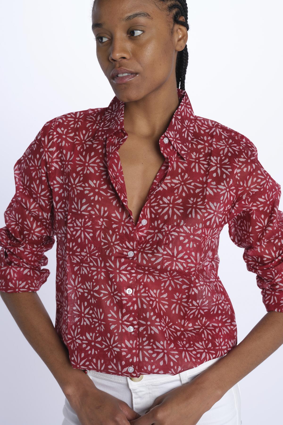Camicia FLEUR by terre rouge. La modella è alta 174 cm e indossa una M. Composizione: 100% cotone.