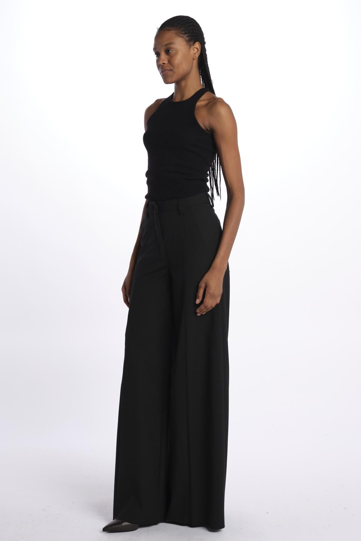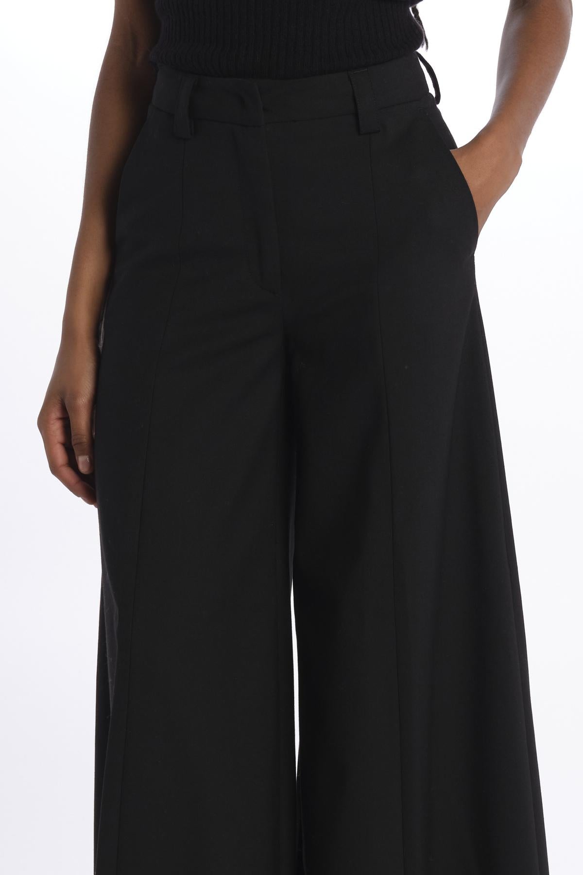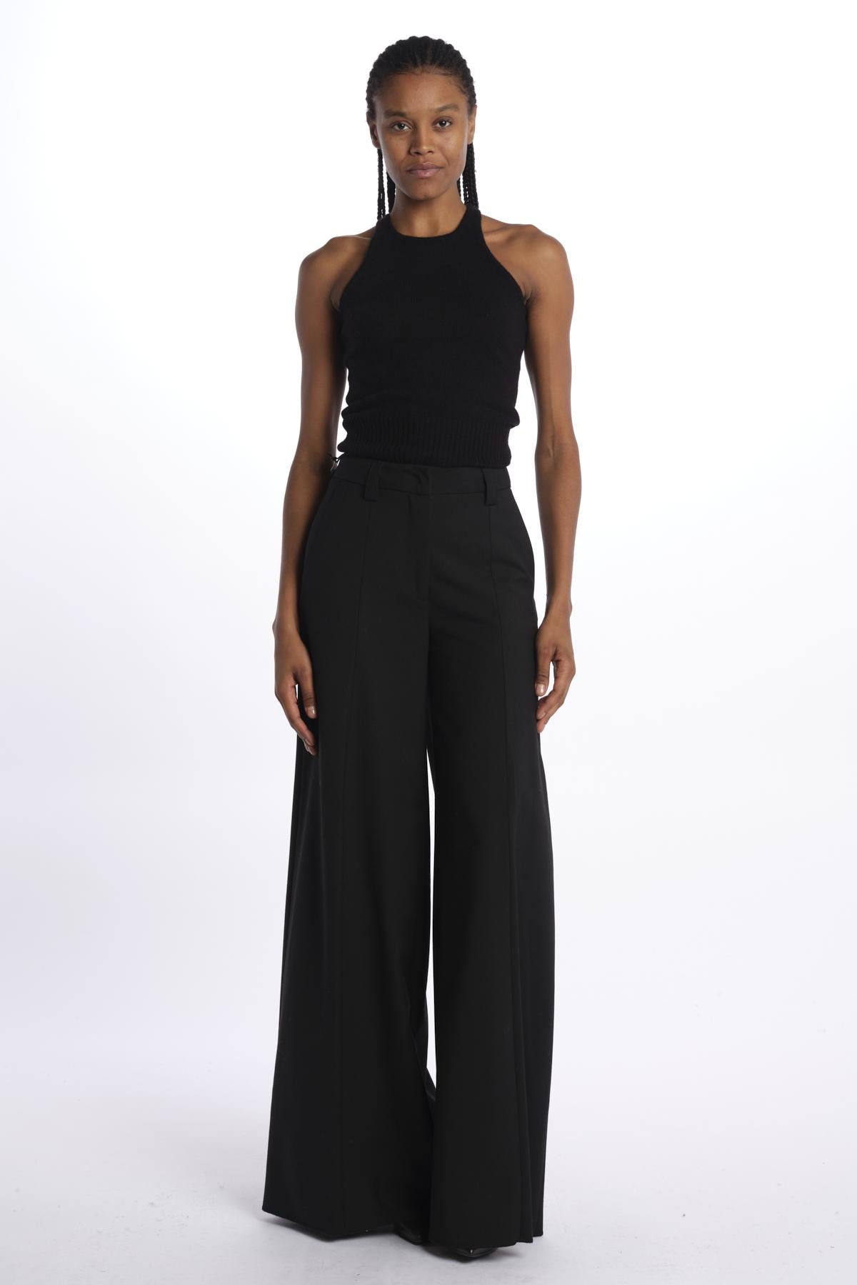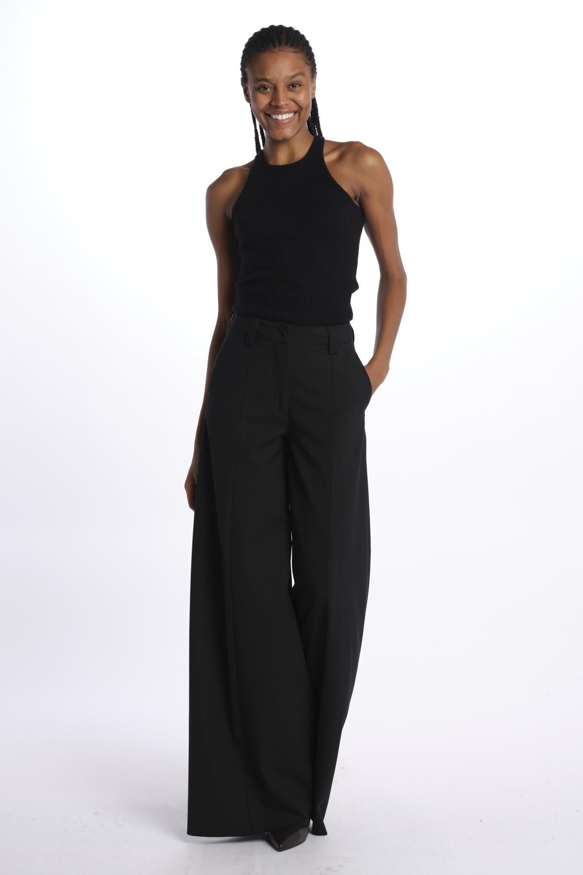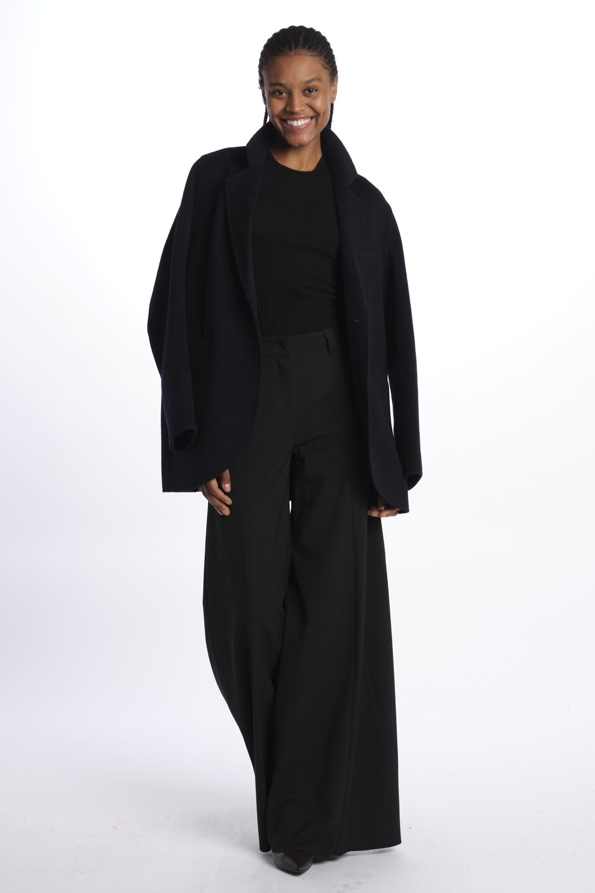 Pantalone ALMA con pinces by the latest. La modella è alta 174 cm e indossa una taglia 38. Composizione: 53% poliestere, 43% lana vergine, 4% elastane.