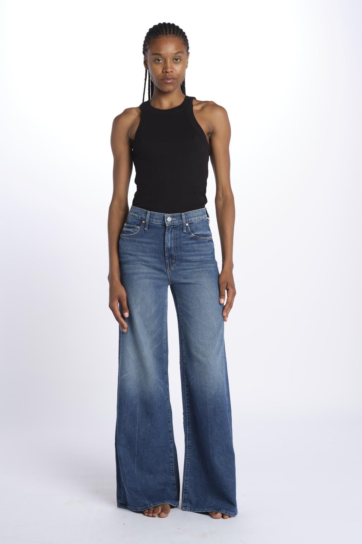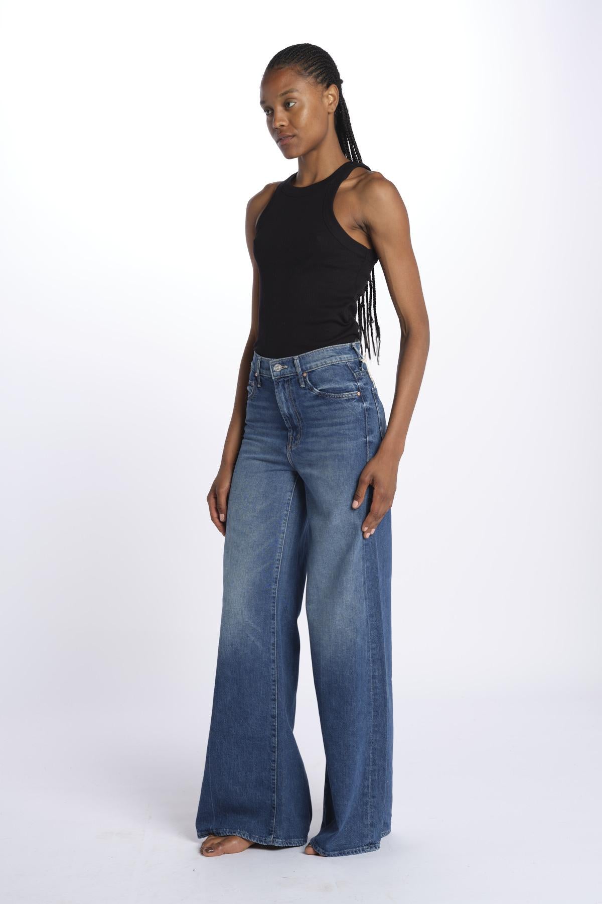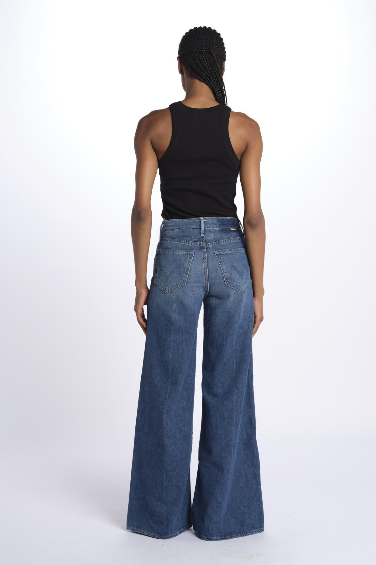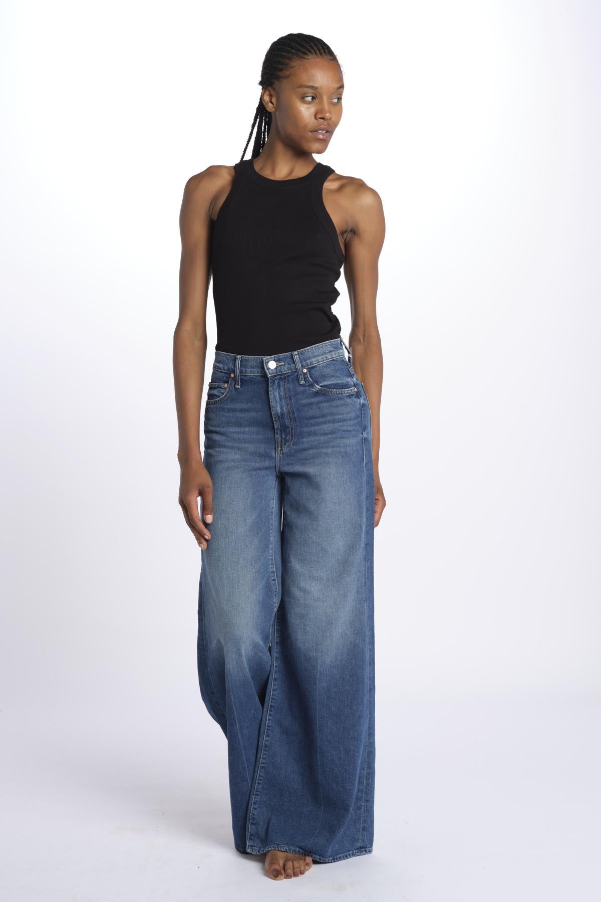 THE UNDERCOVER SNEAK (Superior) by mother. La modella è alta 174 cm e indossa una taglia 26. Composizione: 100% cotone.