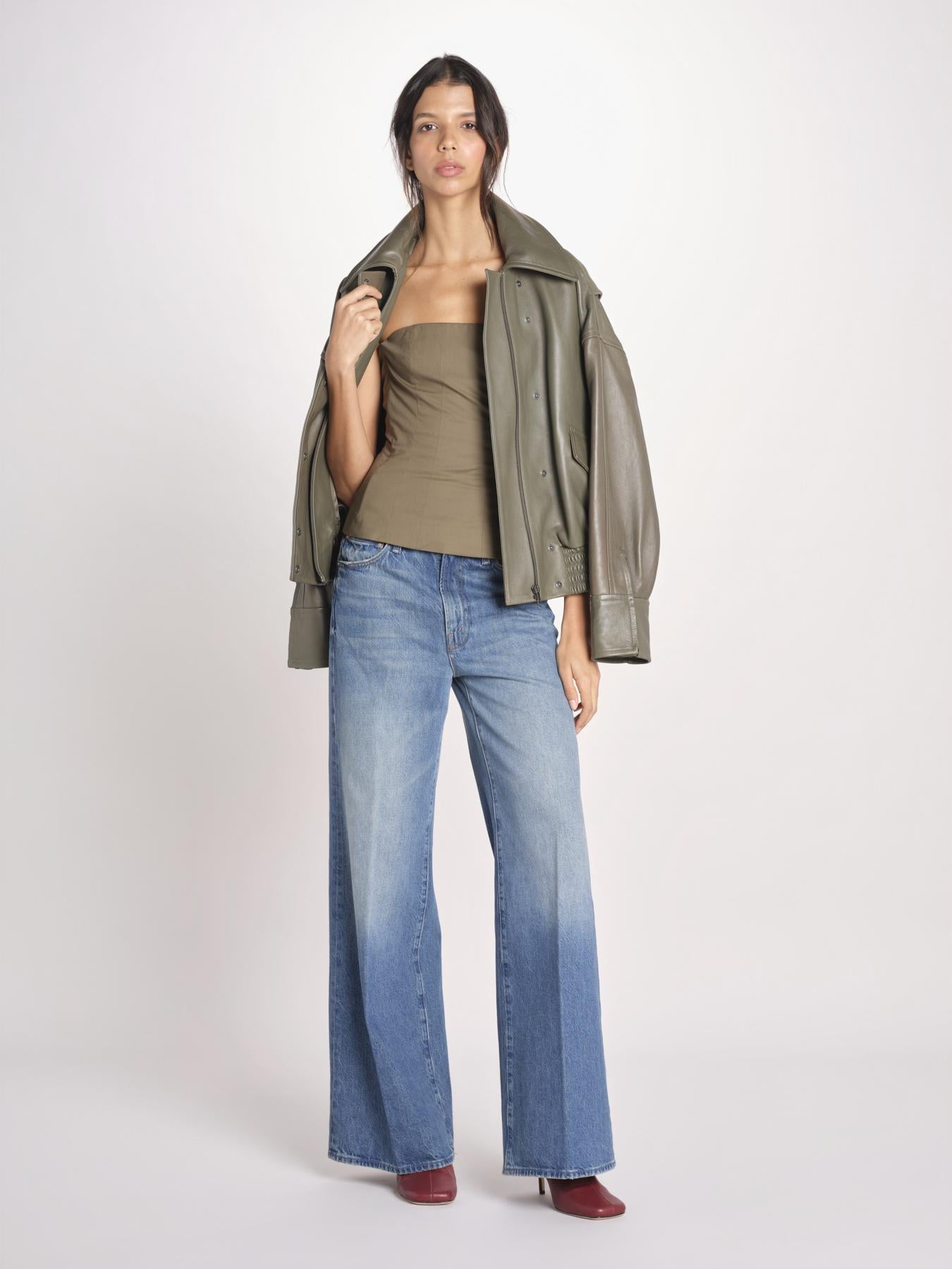 Top bustier in cotone. La modella è alta 180cm e indossa una taglia 40. Composizione: 95% cotone, 5% elastan.