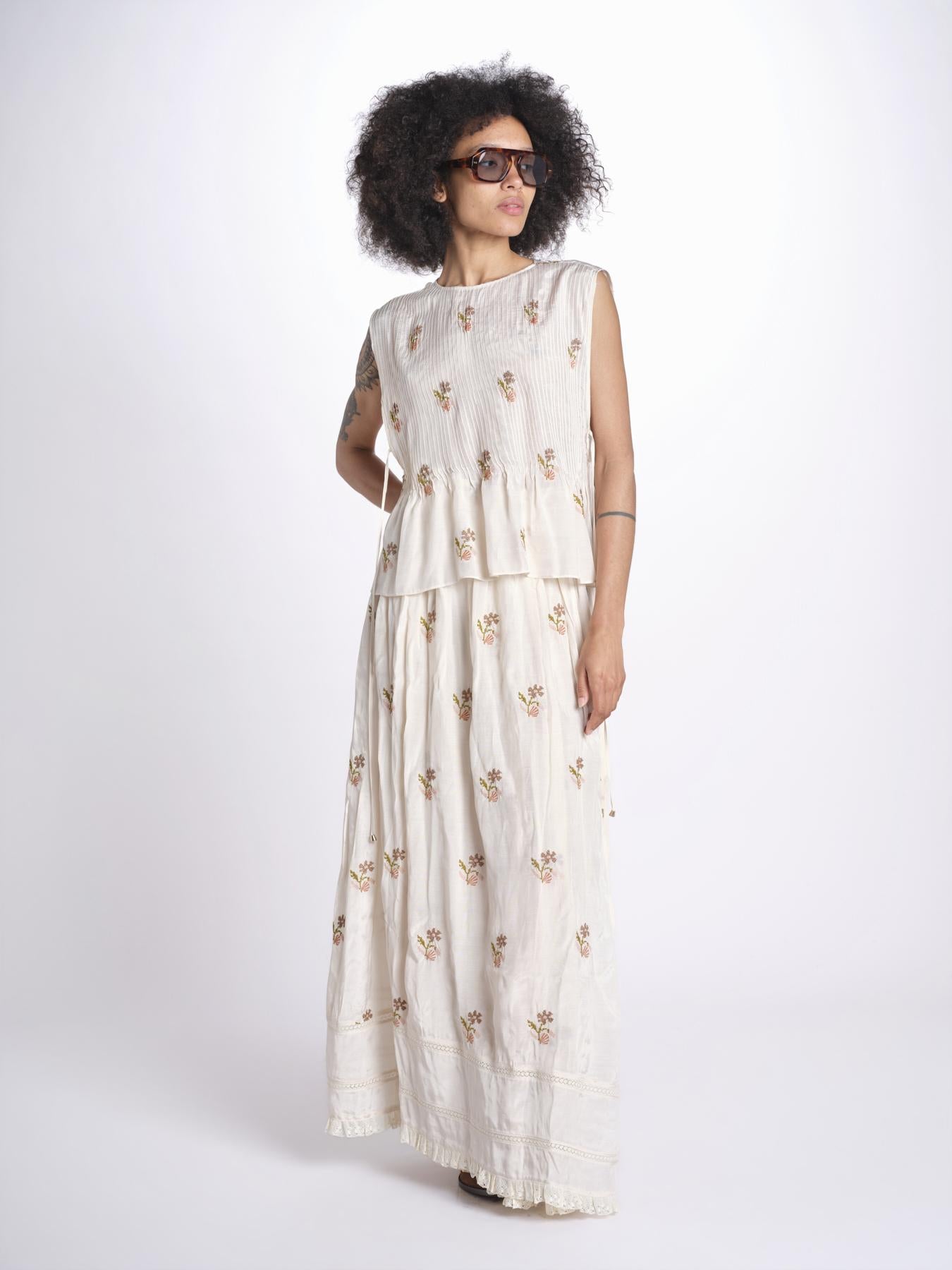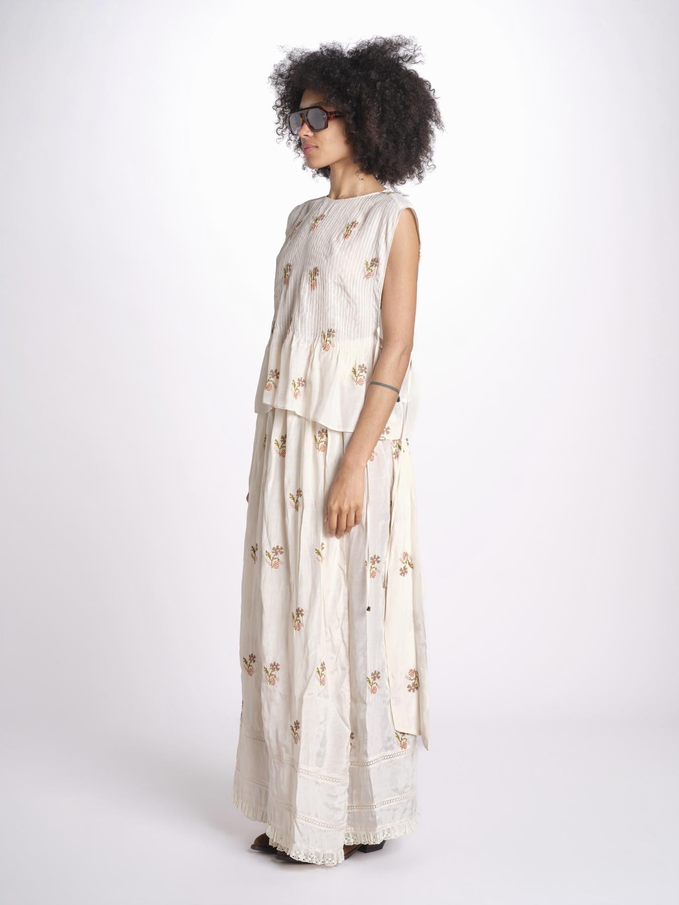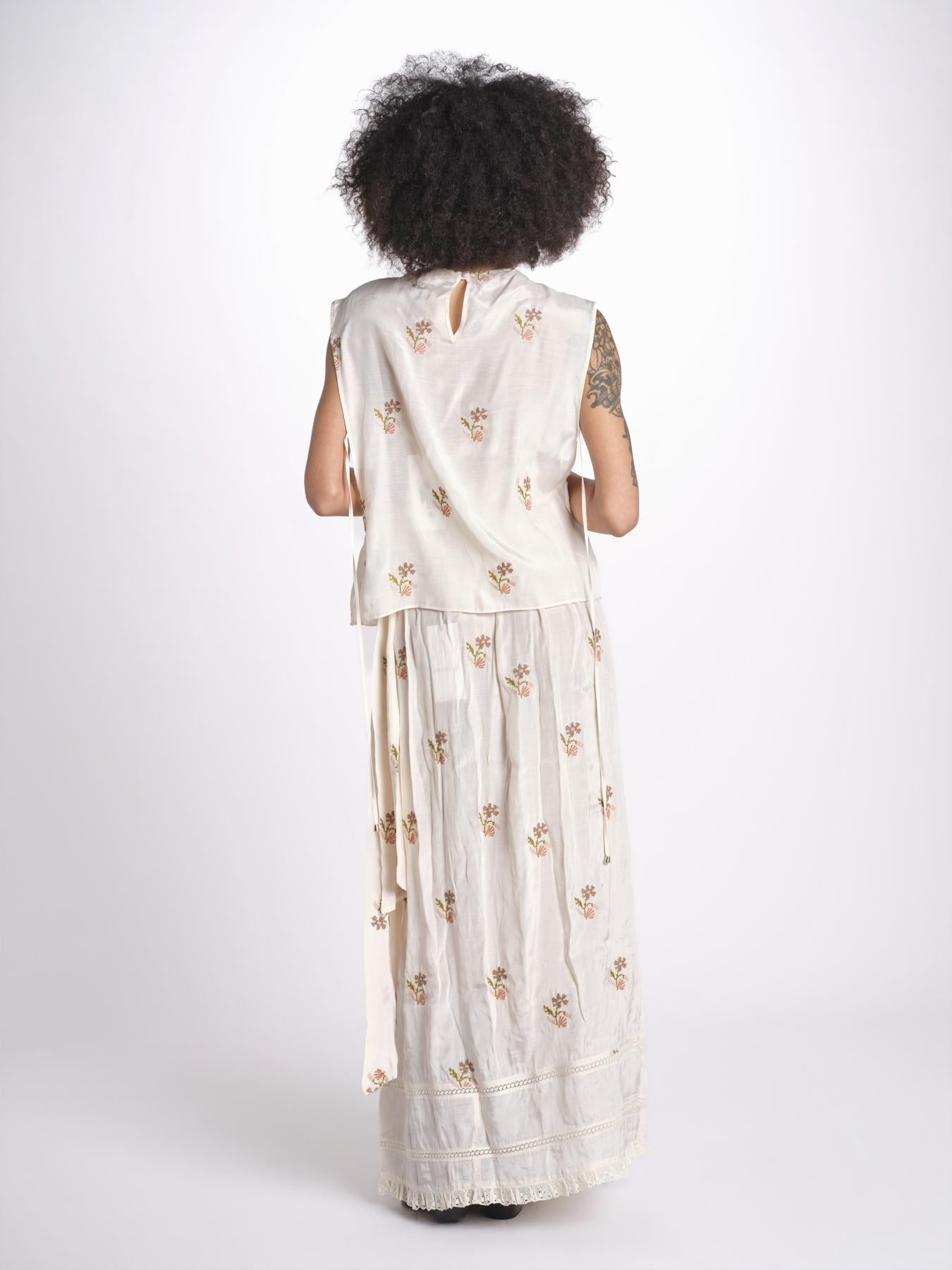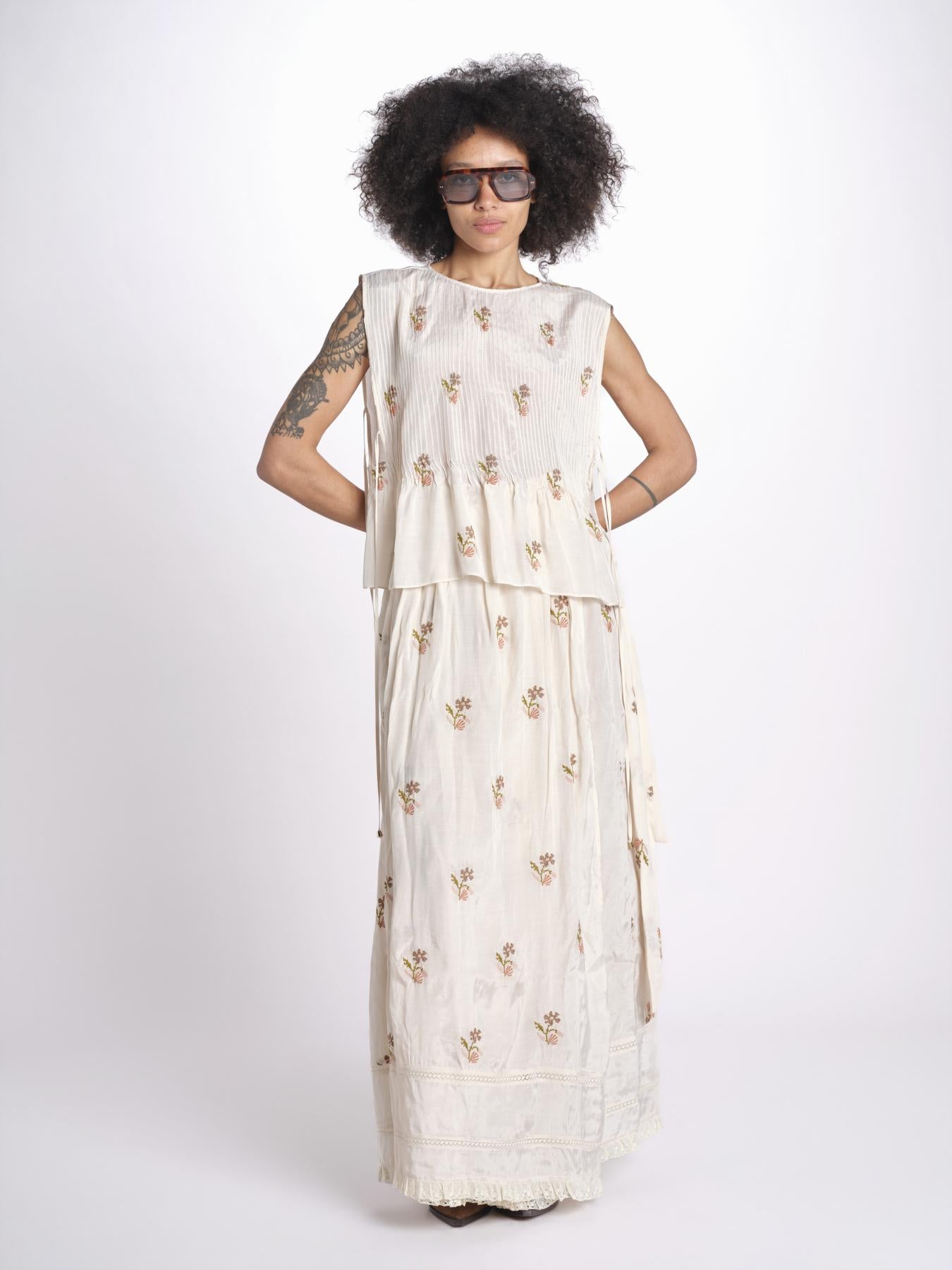 top con ricamo fiorellini e nervature