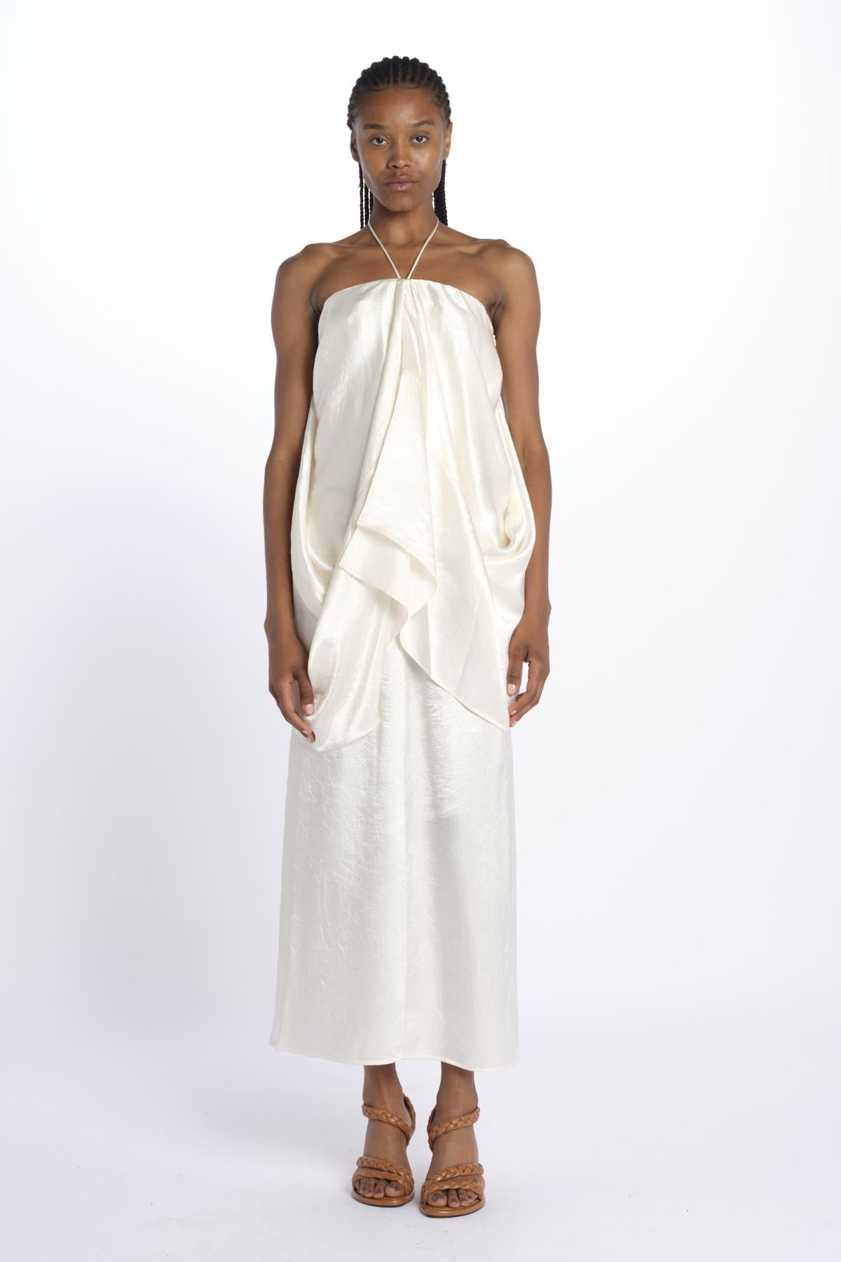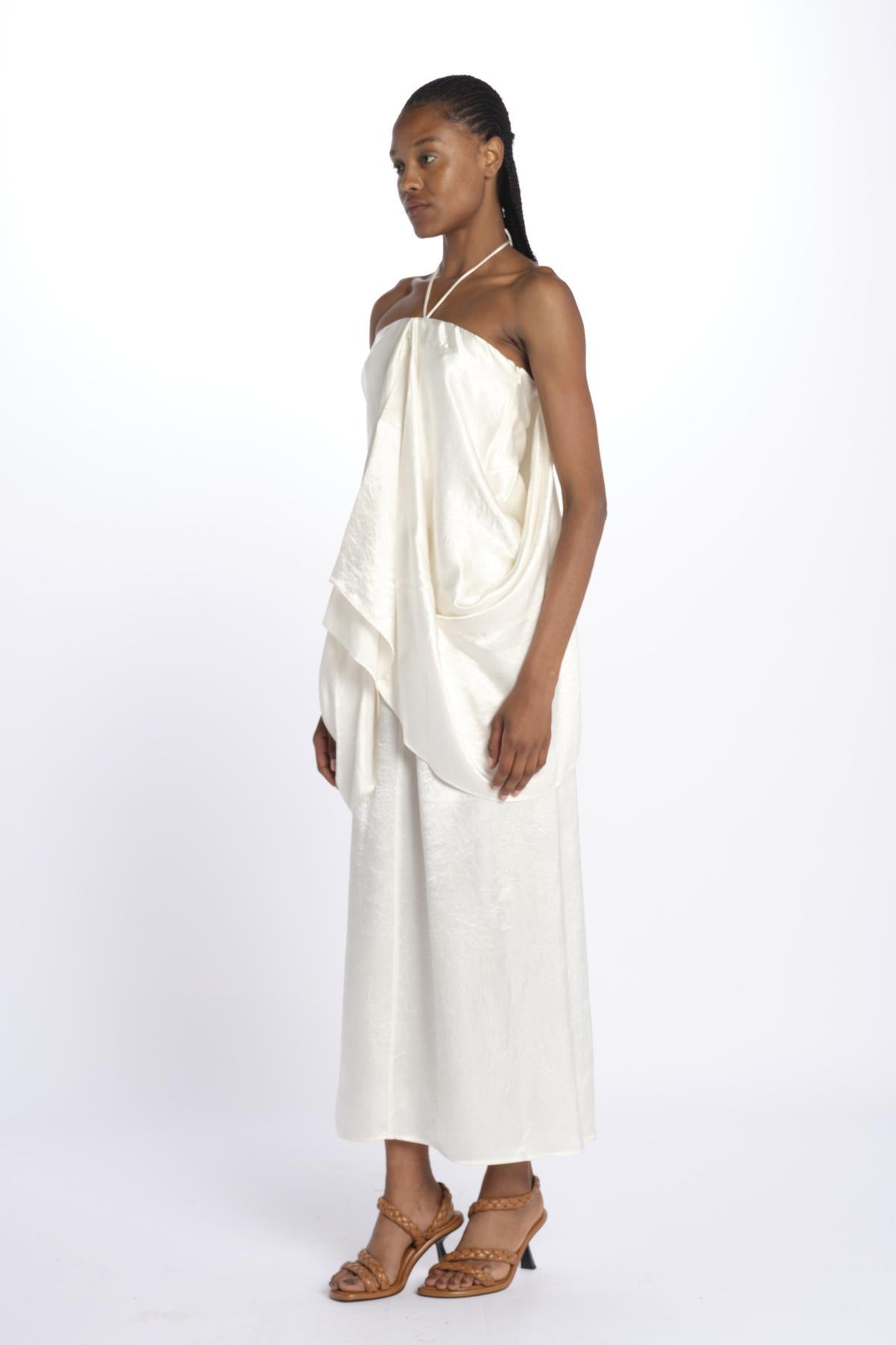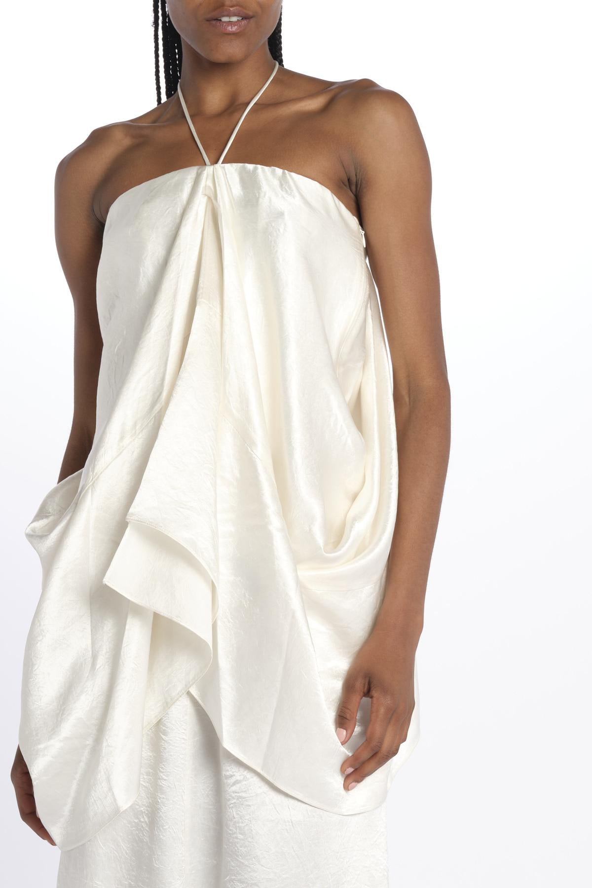 Top DOROTHY cricke spallina by herskind. La modella è alta 174 cm e indossa una taglia 36 (IT42). Composizione: 69% lyocell, 25% cotone, 6% seta.