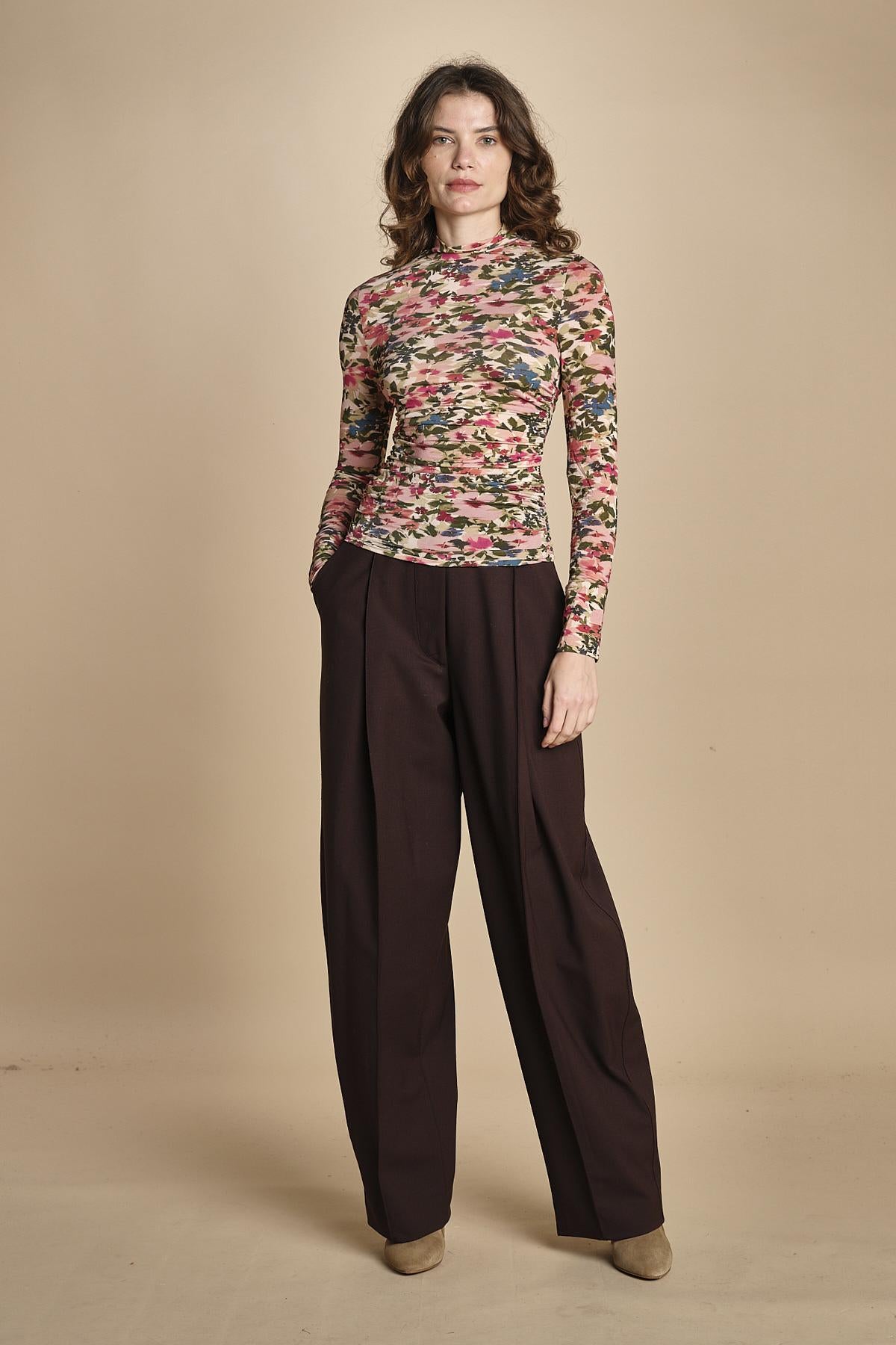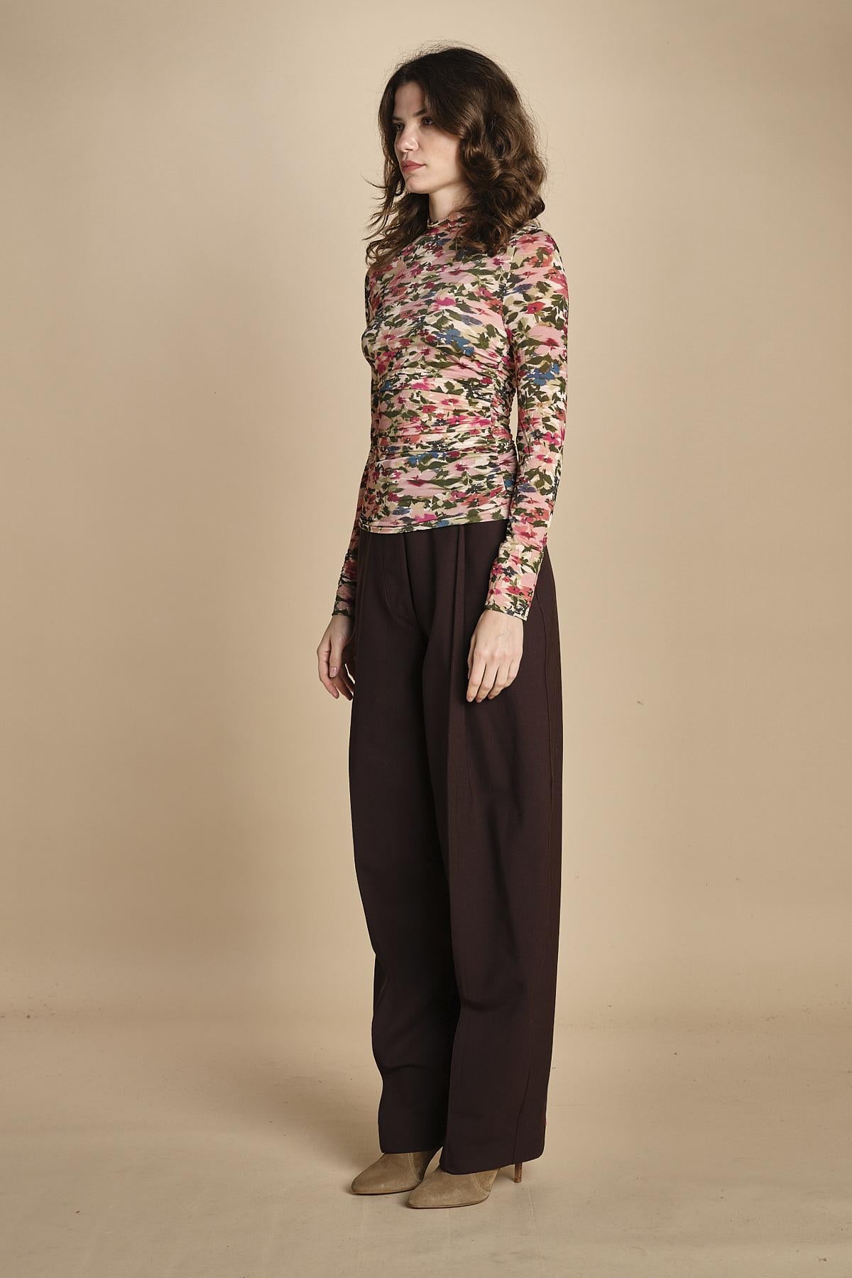 top in jersey a fiori. La modella è alta 176 cm e indossa una taglia S. 85% viscosa 15% elastane