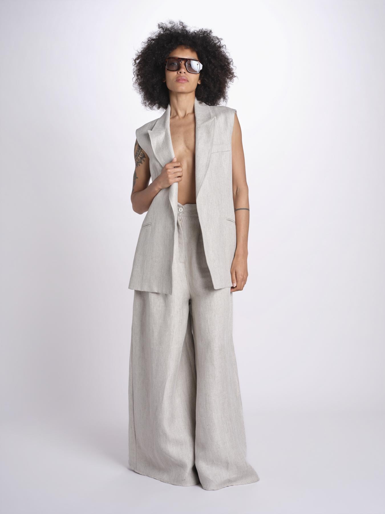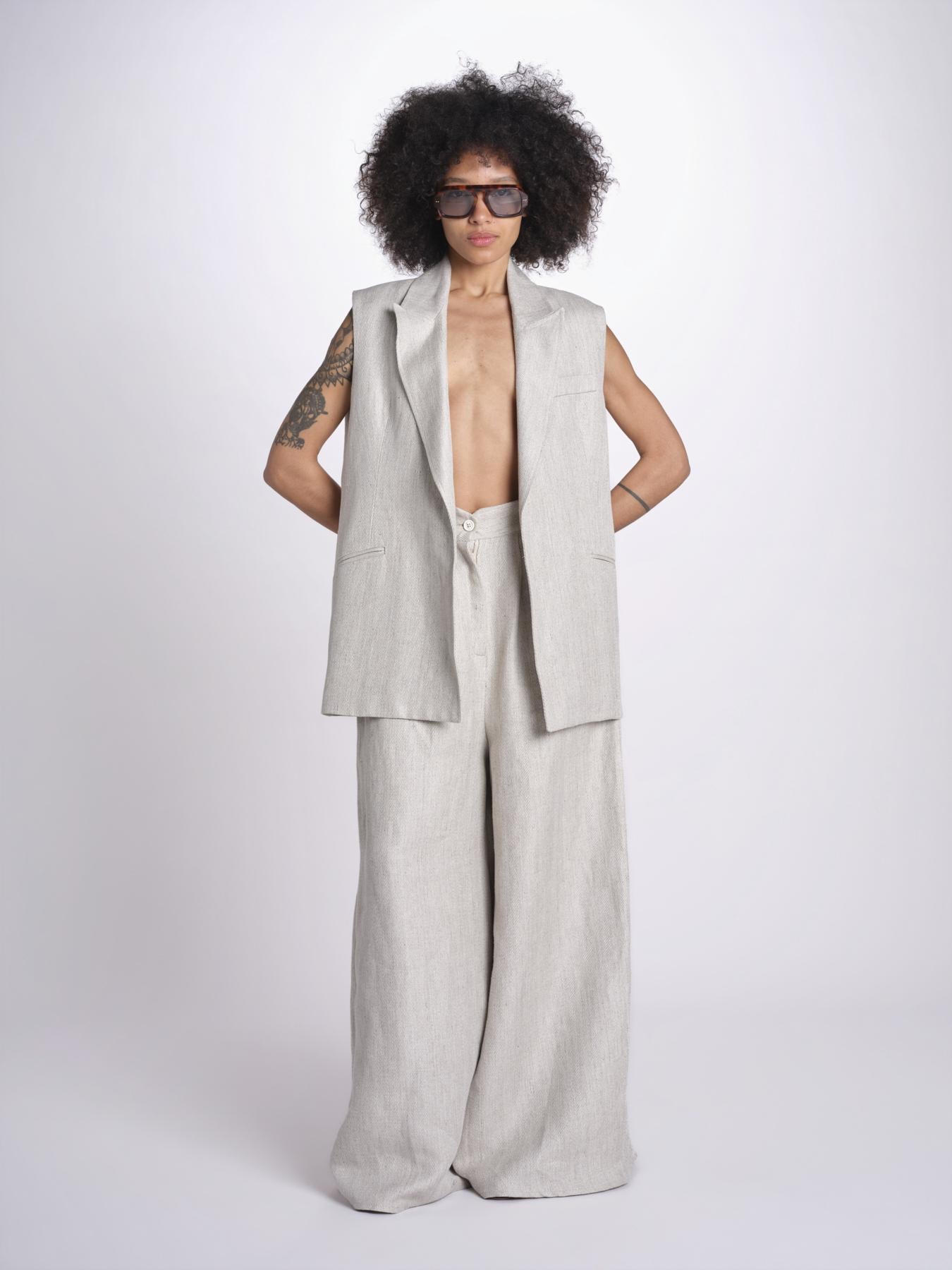 Gilet in lino. La modella è alta 1.75 e indossa una taglia S. Composizione: 100% lino.