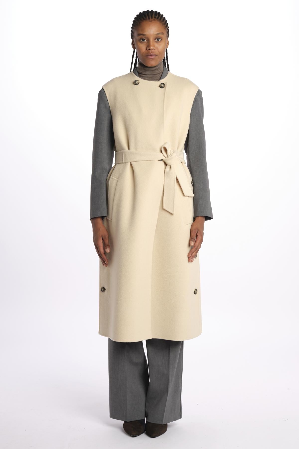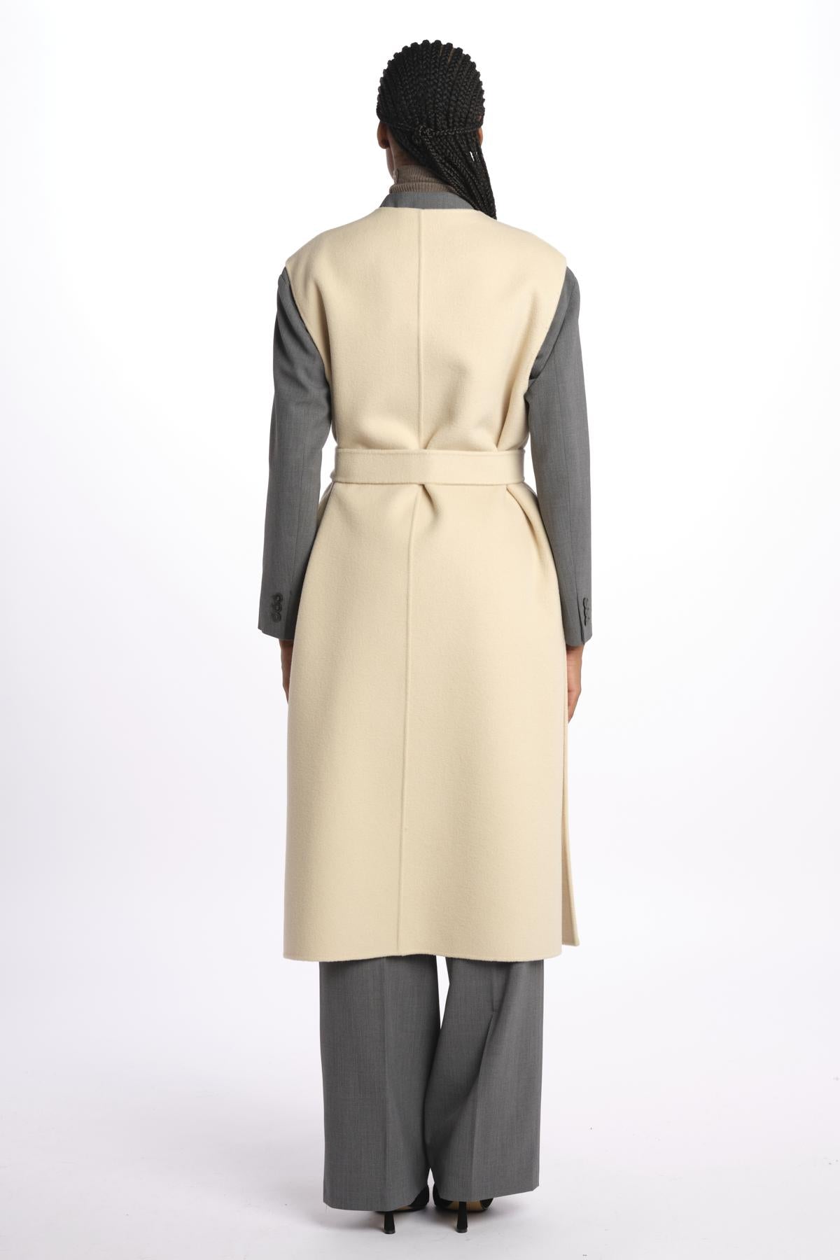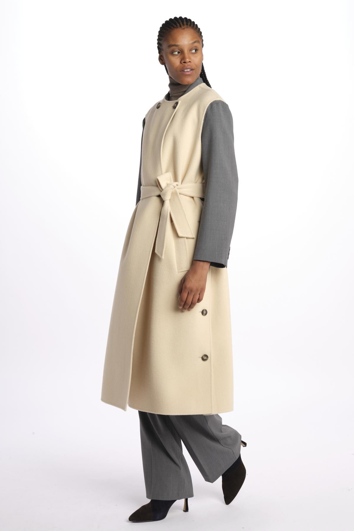 Gilet double STECCA con bottoni by weekend maxmara. La modella è alta 174 cm e indossa una taglia 38. Composizione: 100% lana vergine.