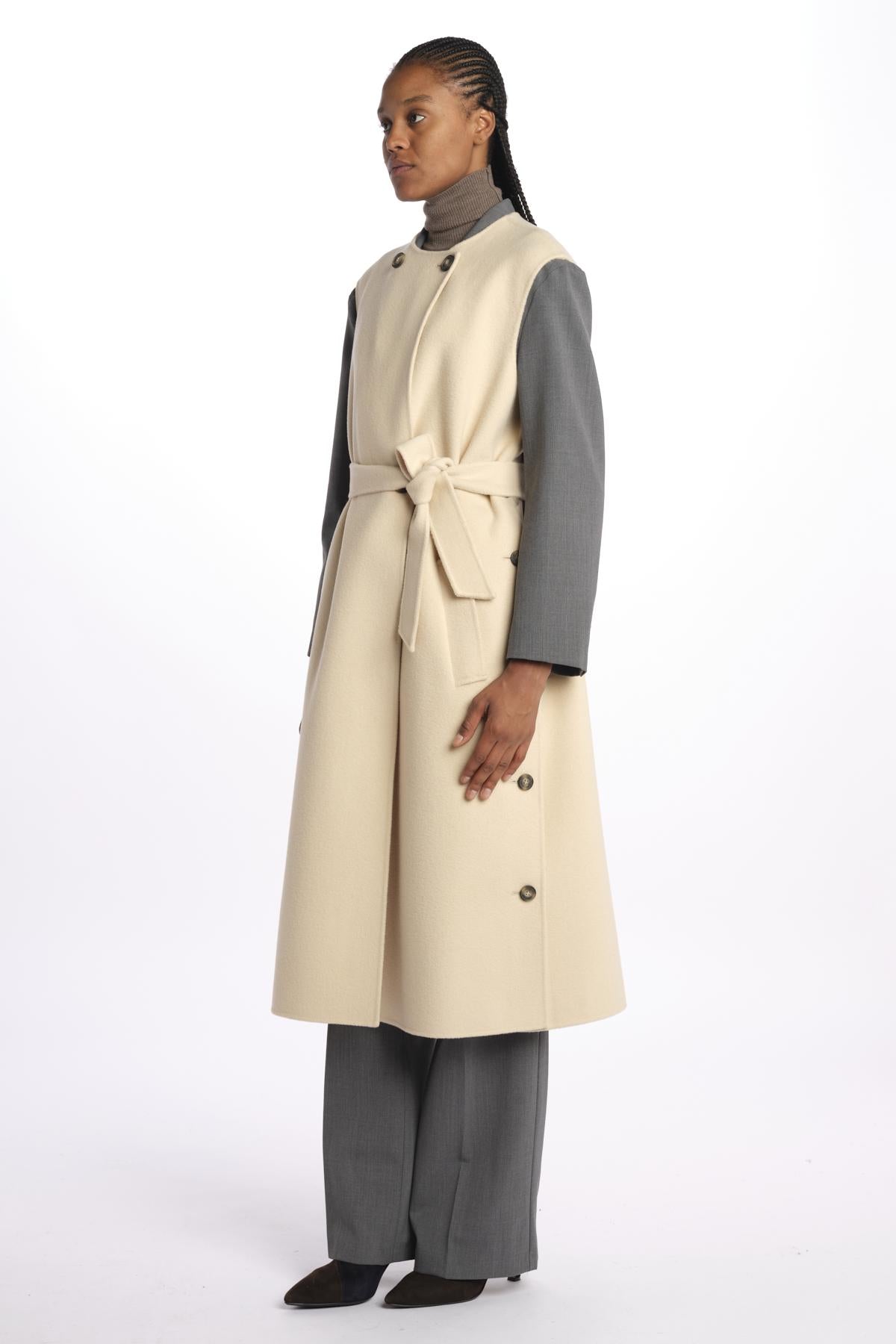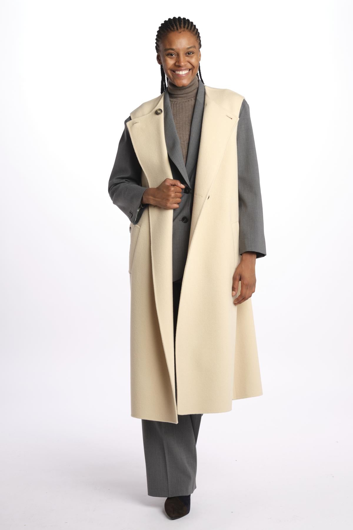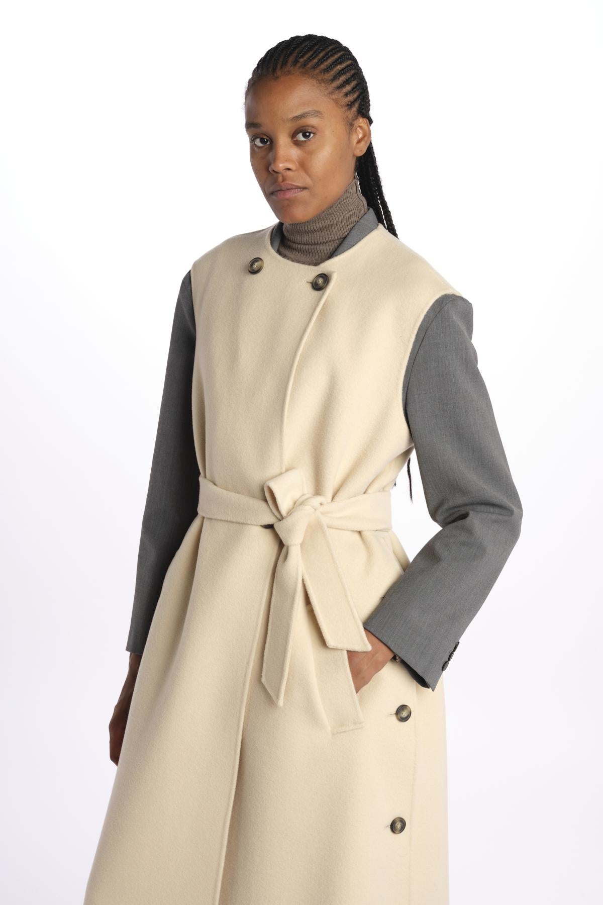 Gilet double STECCA con bottoni by weekend maxmara. La modella è alta 174 cm e indossa una taglia 38. Composizione: 100% lana vergine.