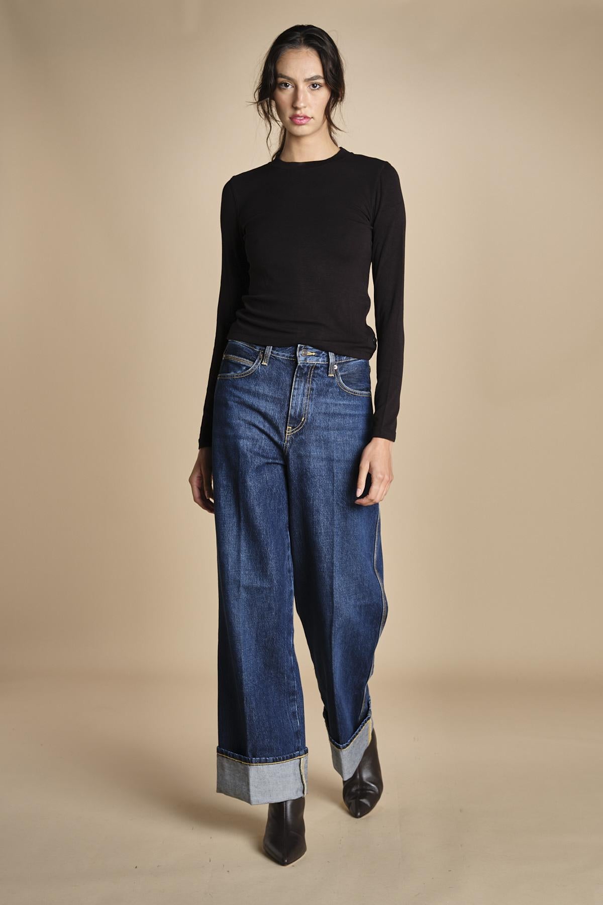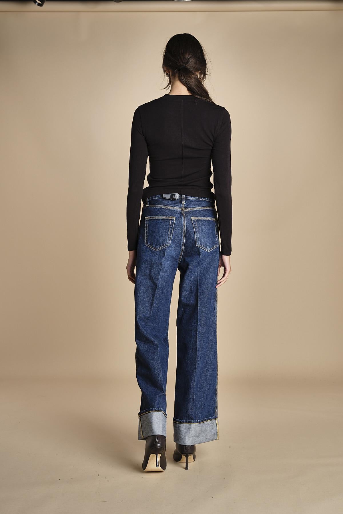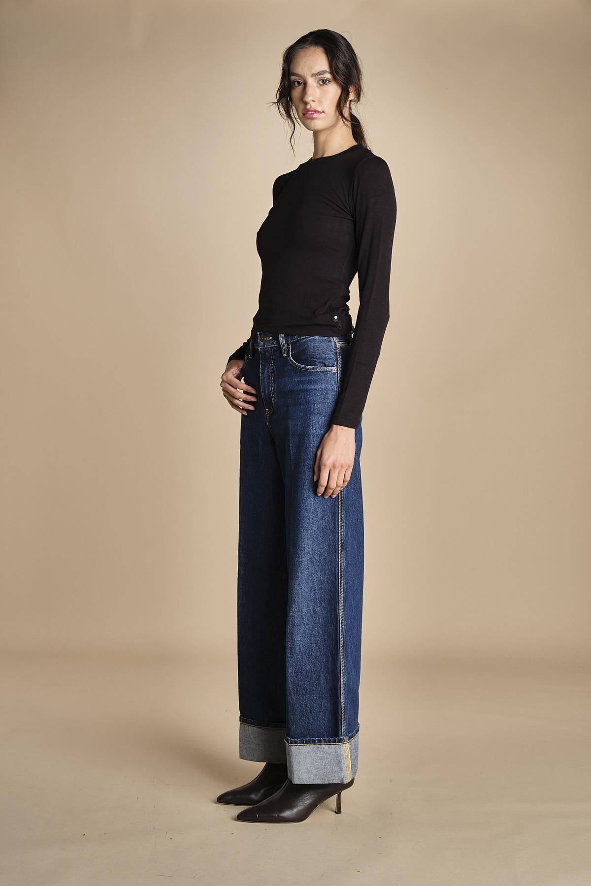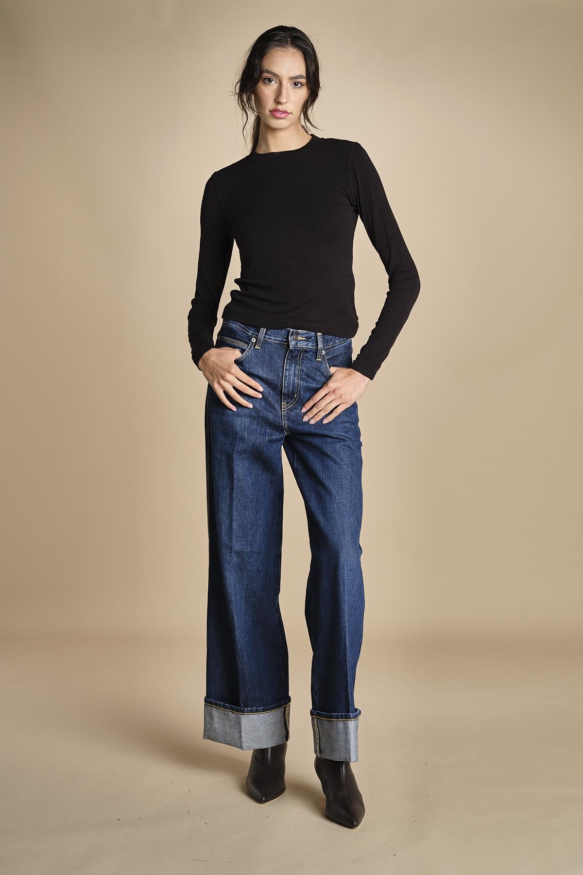 t-shirt a costine con manica lunga by frame. La modella è alta 180 cm e indossa una taglia s.
