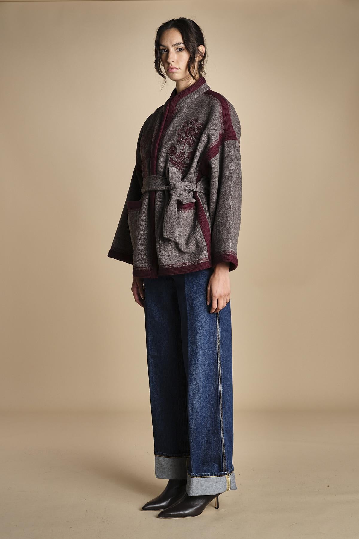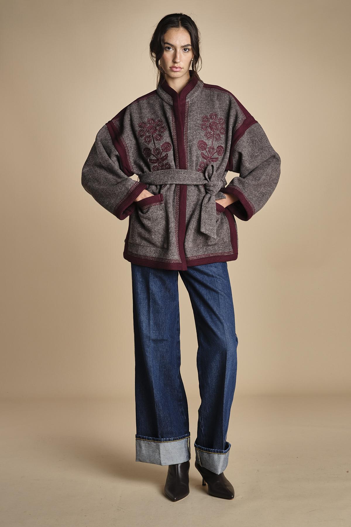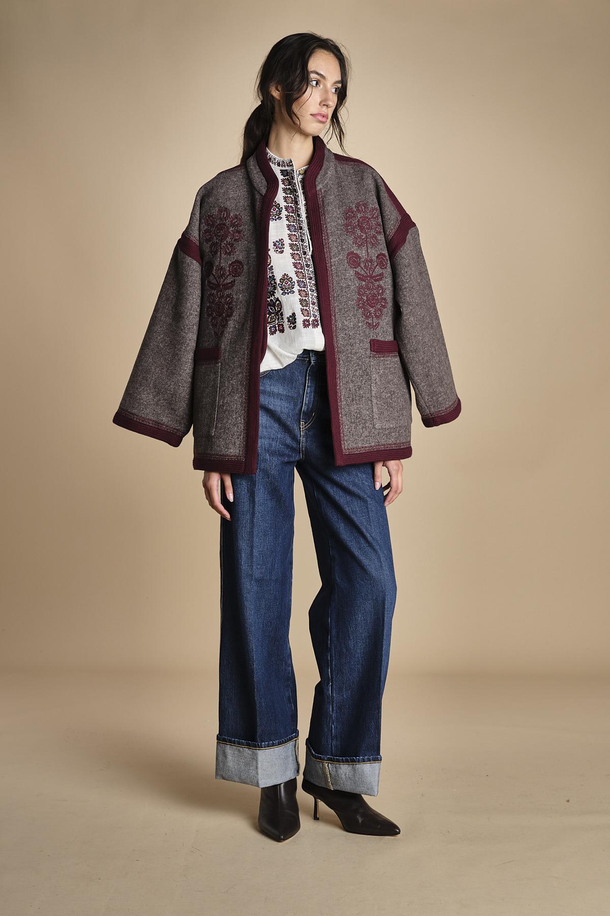 giacca in tessuto diagonale ricamato