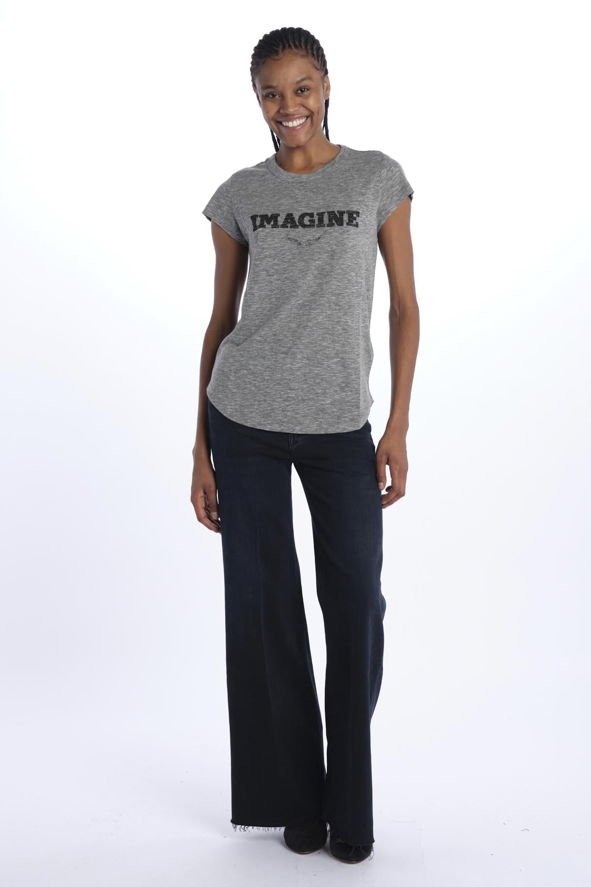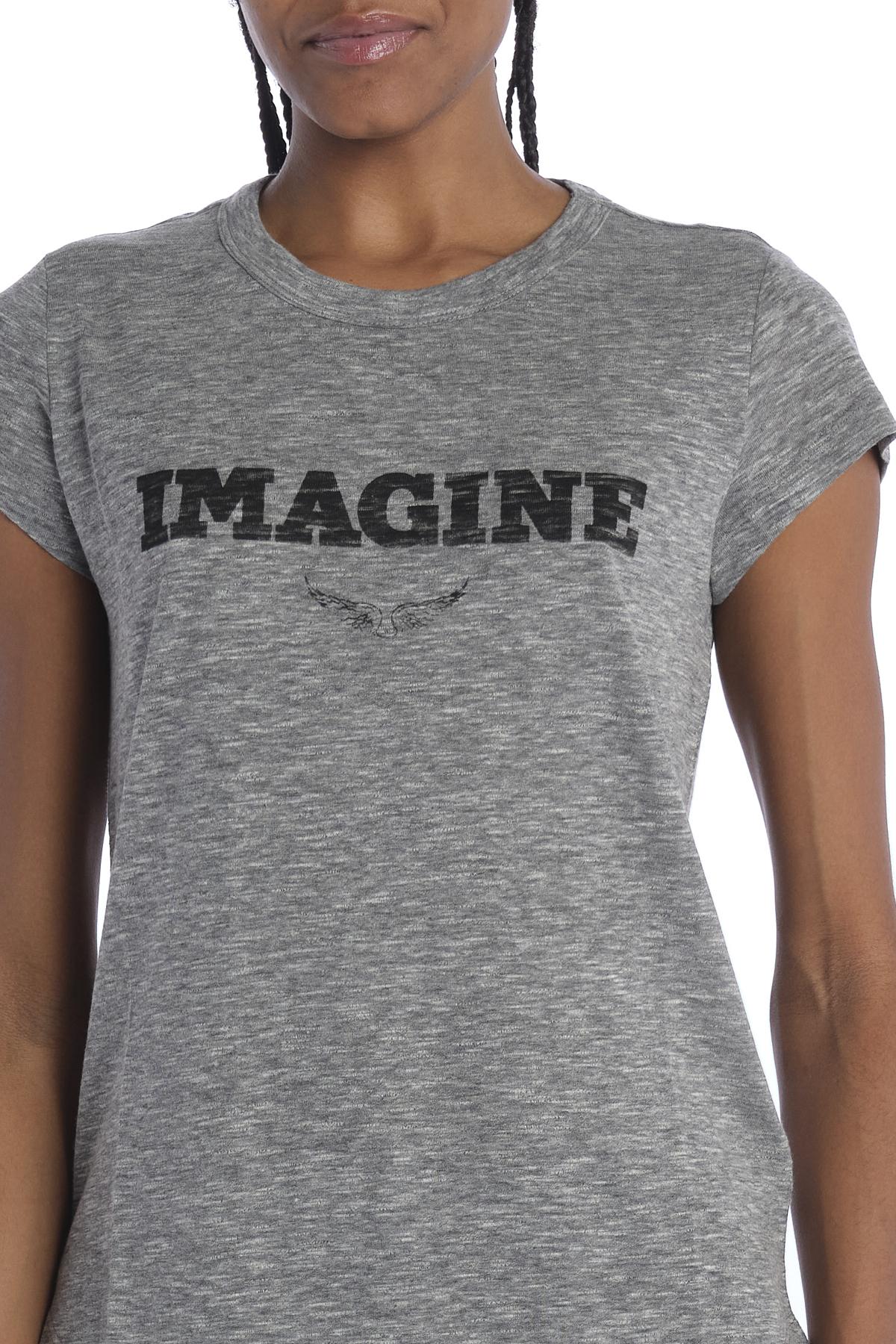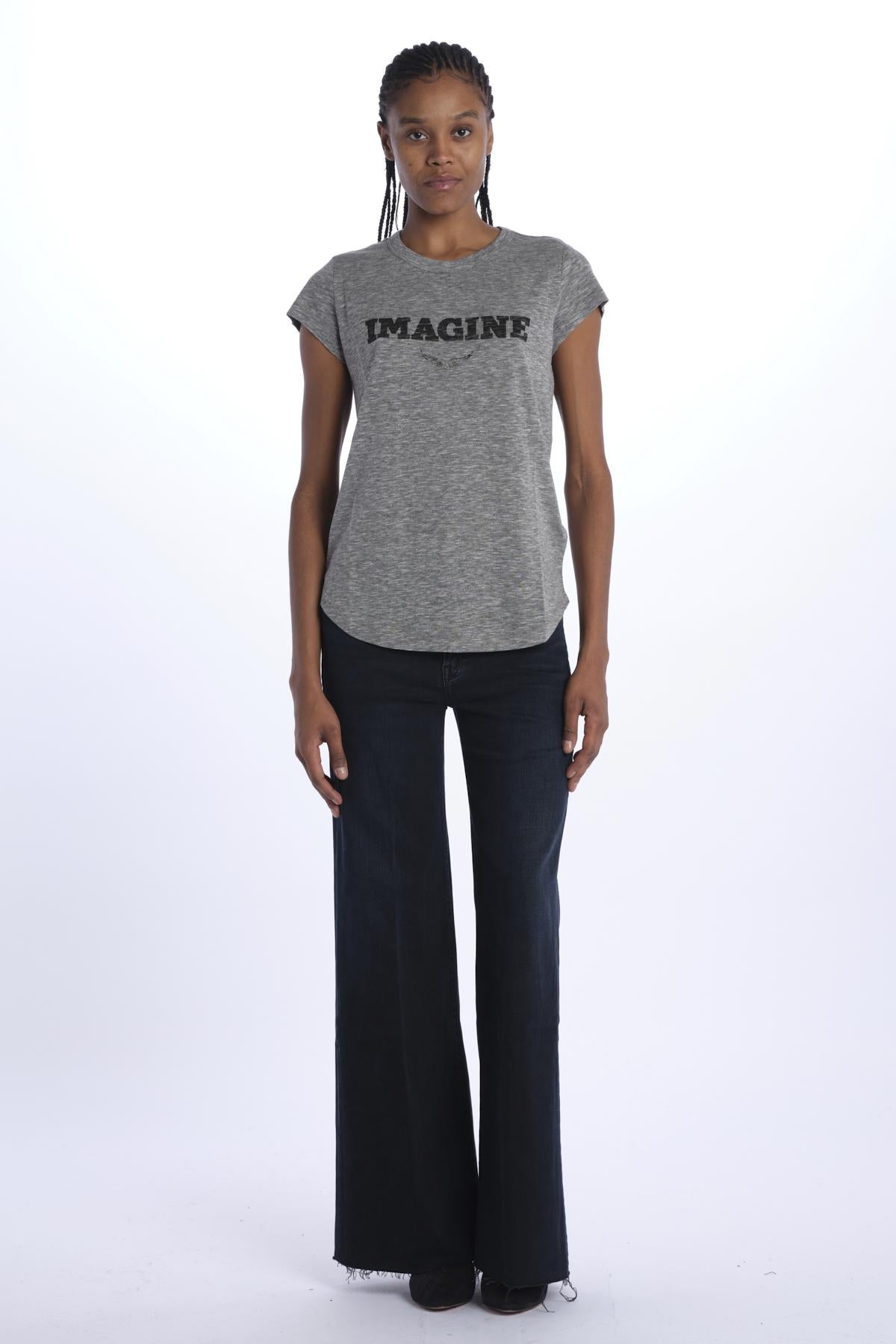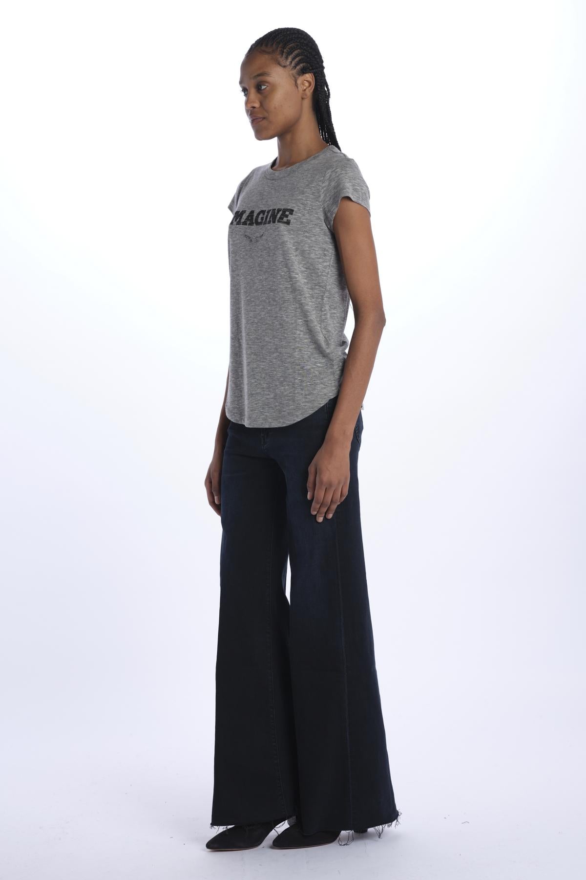 WOOP PC by zadig & voltaire. La modella è alta 174 cm e indossa una taglia S. Composizione: 50% poliestere, 50% cotone.